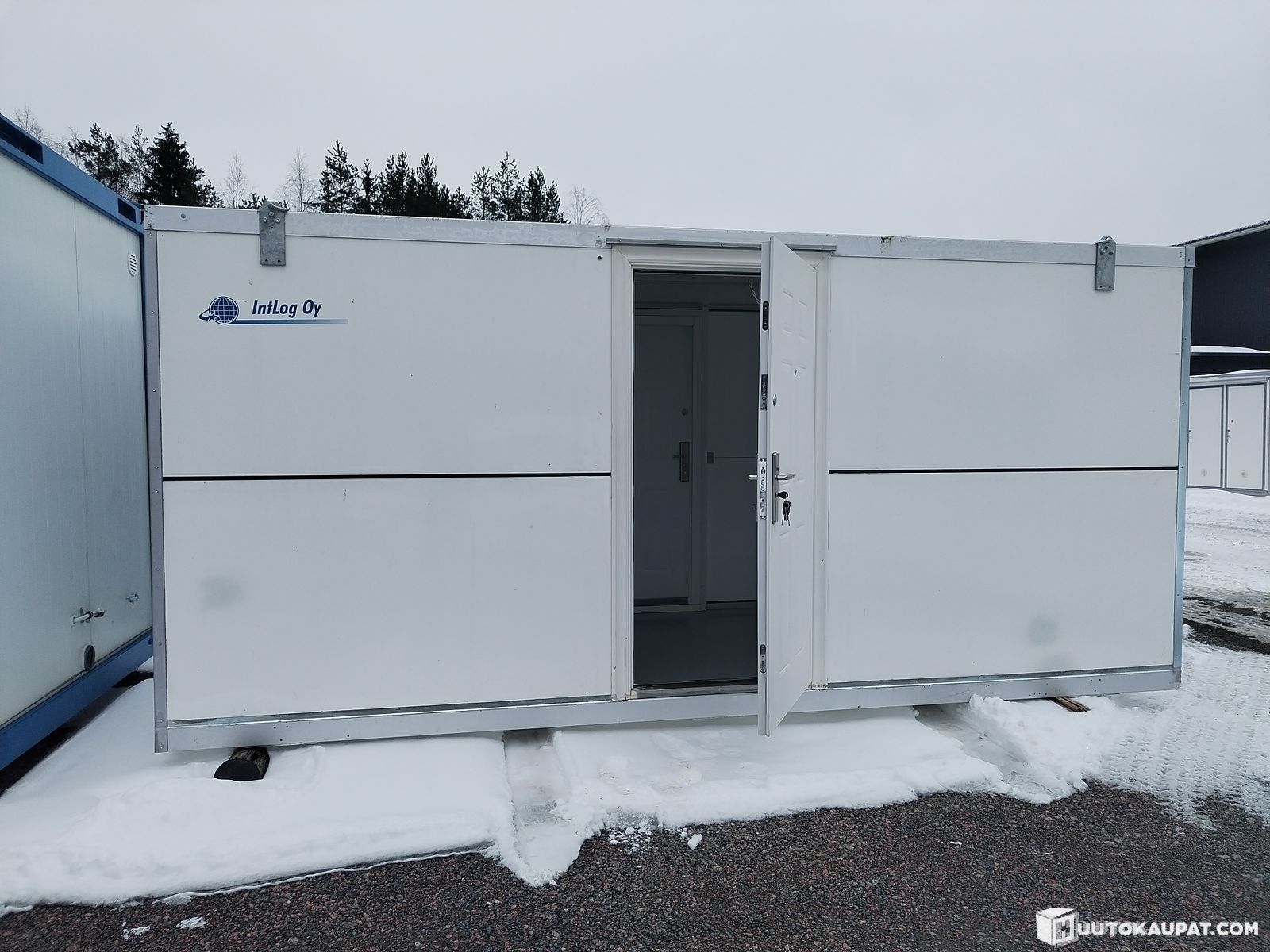 Konttissa 3 ovea, 2 sivuilla ja 1 päädyssä
