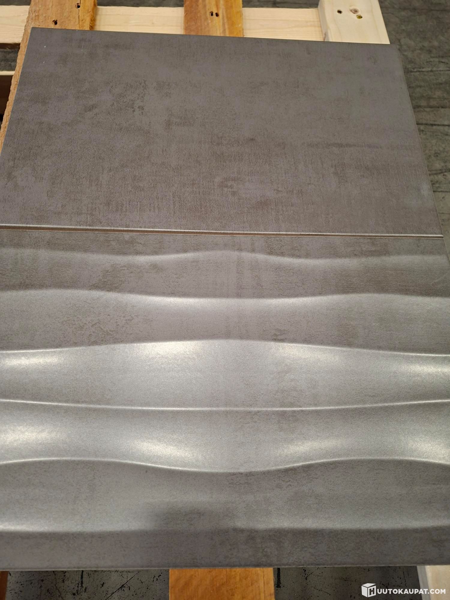 Myydään mallistosta poistuneet keskenään yhteensopivat Pukkila Cosy lasitettu kaakeli laatta 25X40 Basalt tasapintainen matta (237,5 m2) ja Pukkila Cosy lasitettu kaakeli kuviolaatta 25X40 Basalt Wave strukturoitu matta (416,2 m2) yhteispakettina.