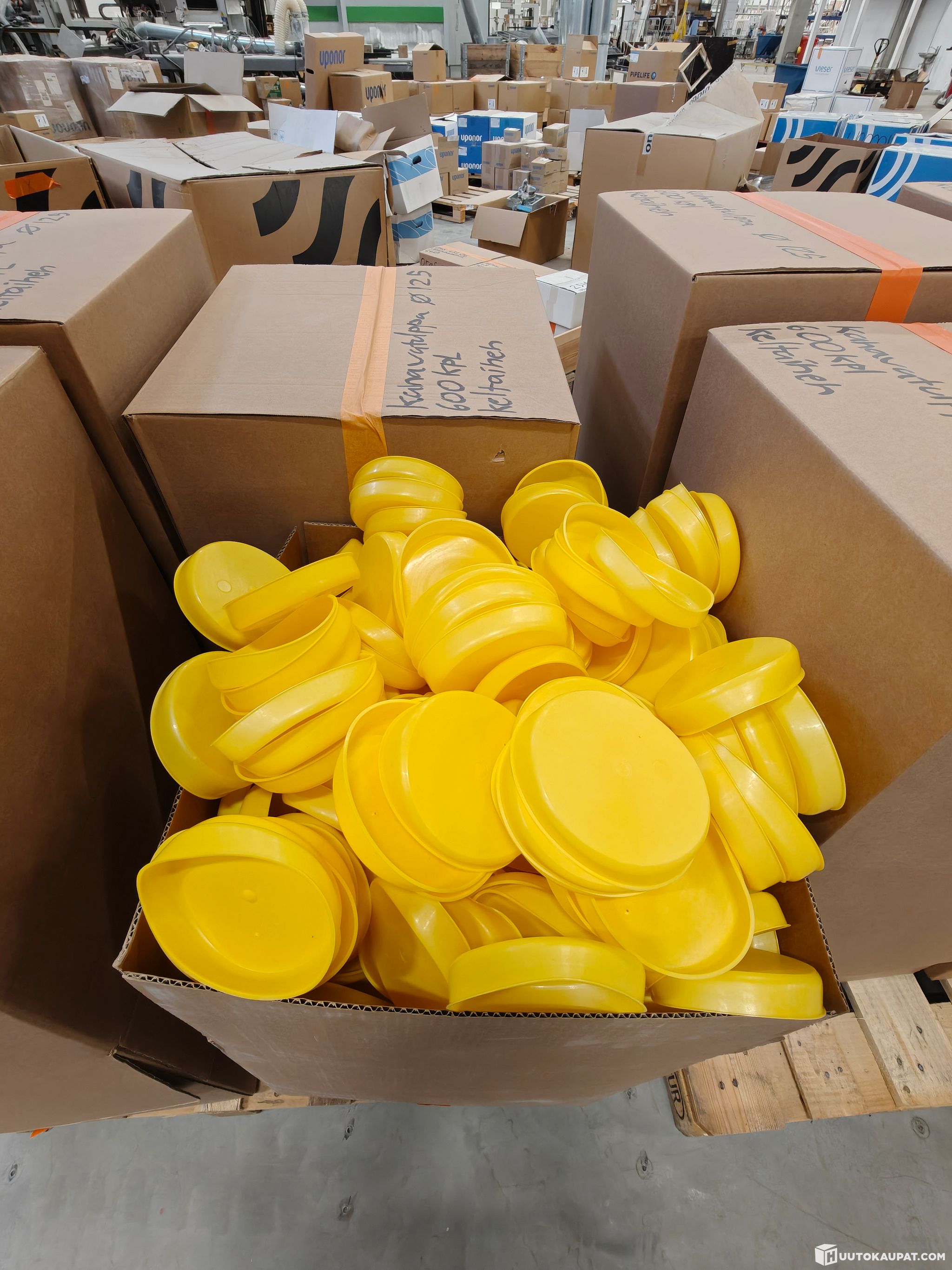 Suuri erä keltaisia ilmastointikanavan suojatulppia.