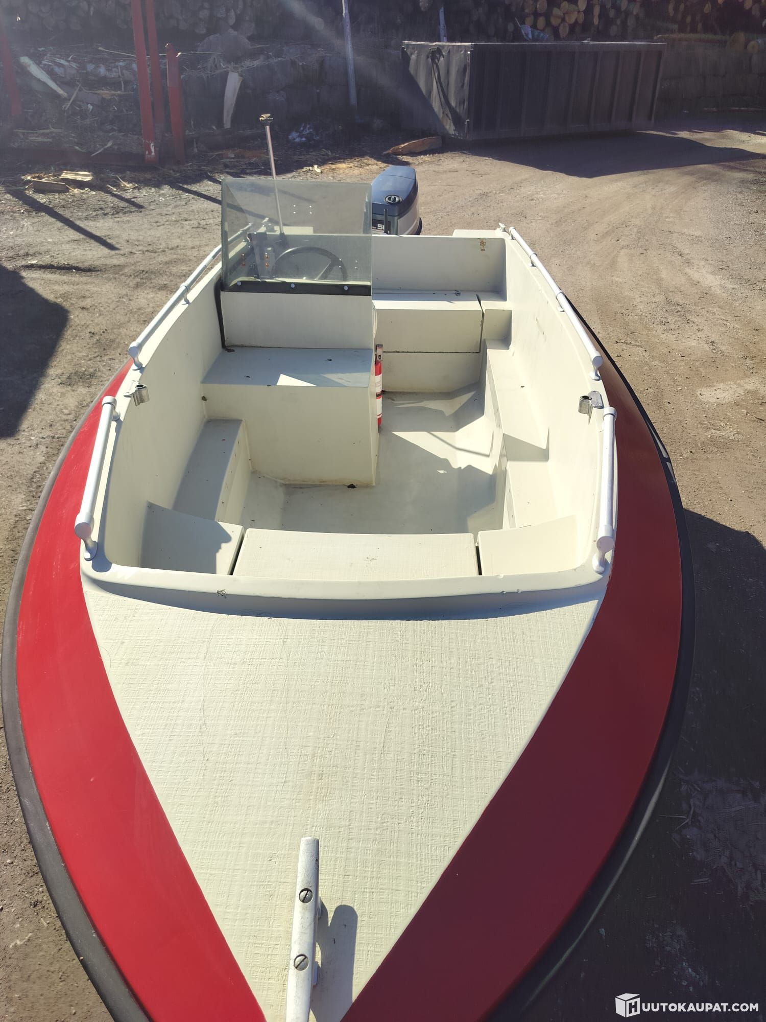 Tästä super nopea vene, kulkee n.75kmh, luotettava Yamaha 50hv. Rekisteröity 5henkilöä ja saa laittaa myös 60hv koneen. Ammattilaisen tekemä jämäkkä traileri kuuluu myös huutoon. Vene levännyt monta vuotta katoksessa. Tästä saa jo vapuksi kunnon kyydit.