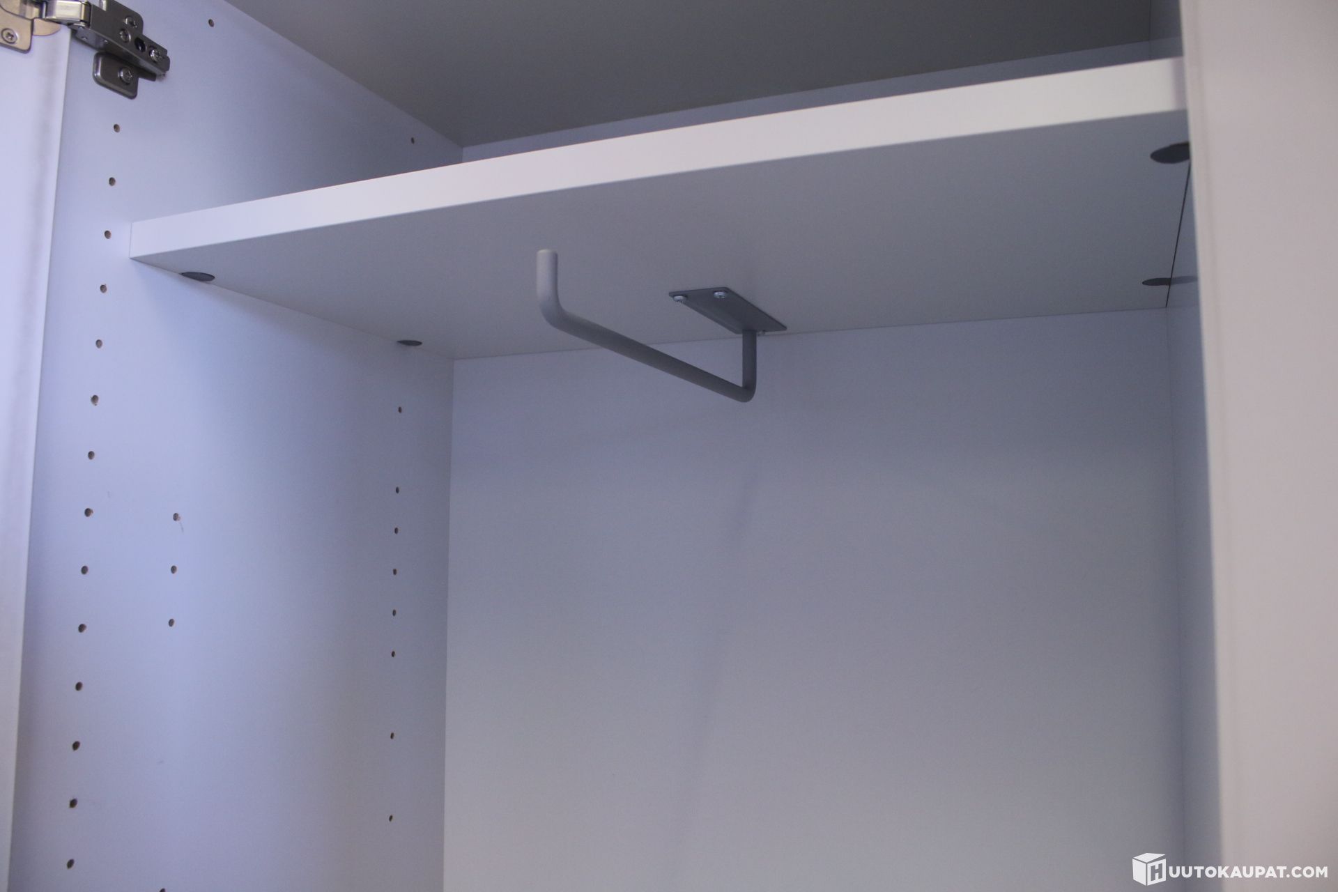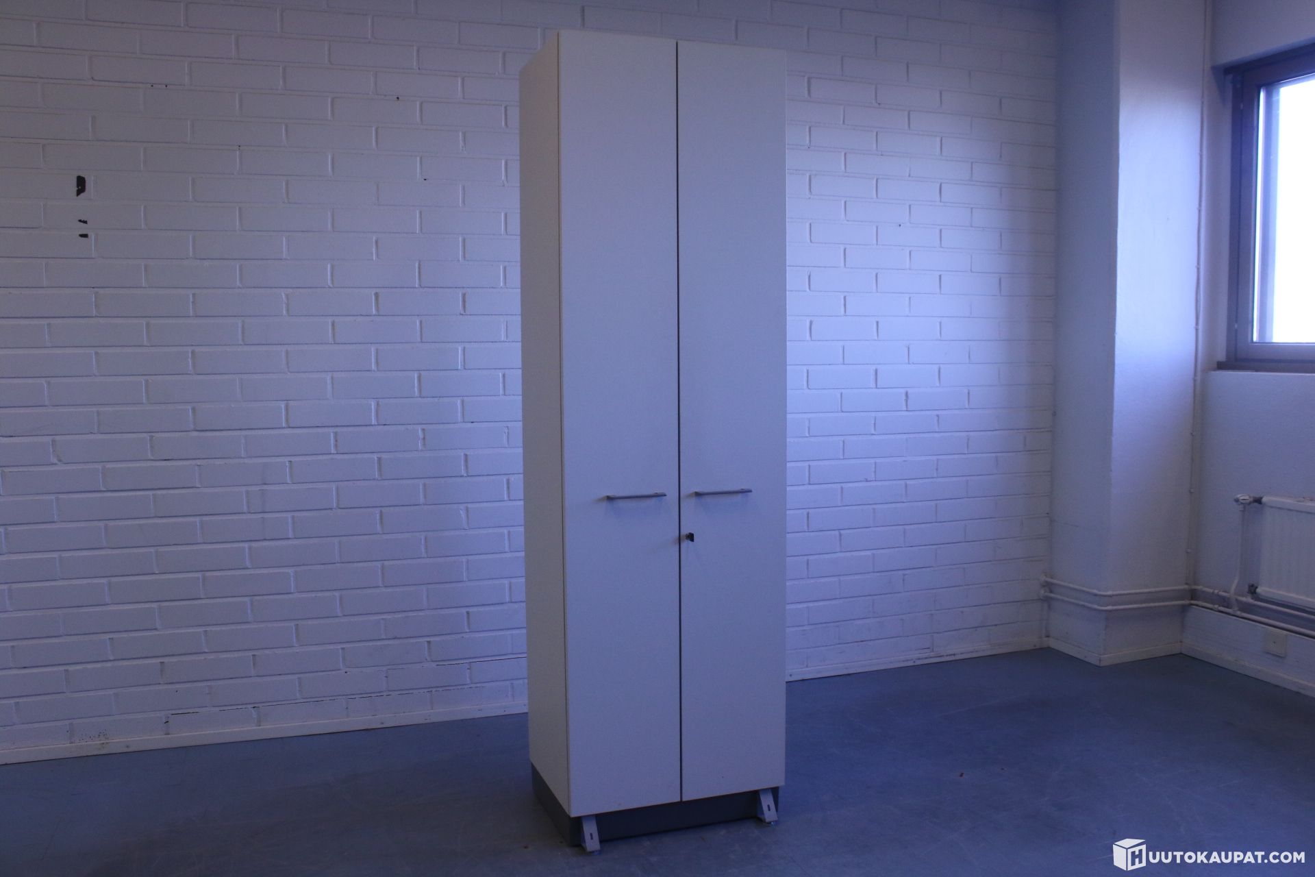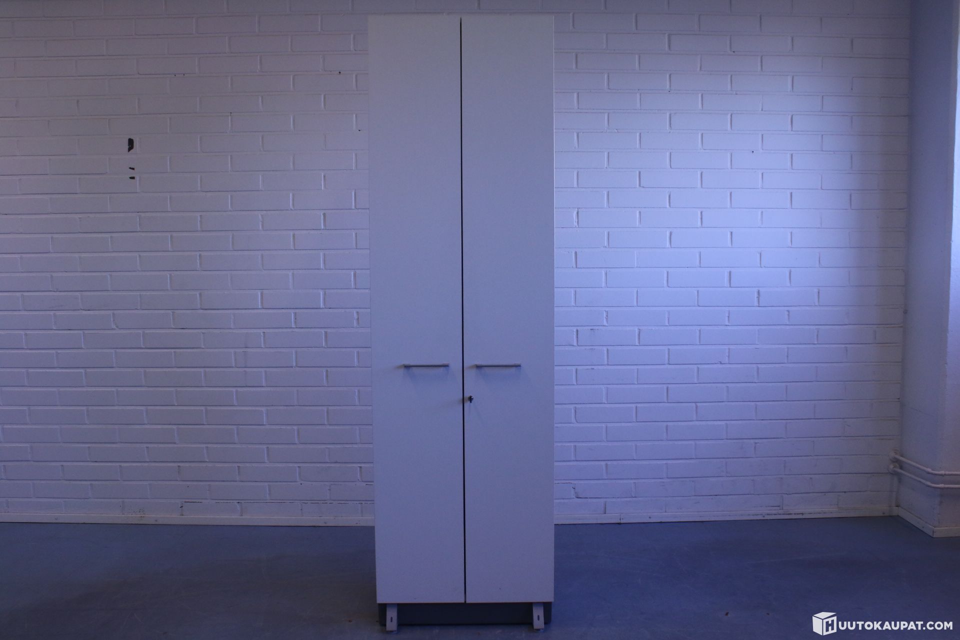 Tyylikäs ja käytännöllinen kaappi jossa paikka henkareille ja kolme tasoa sekä avaimellinen lukko.