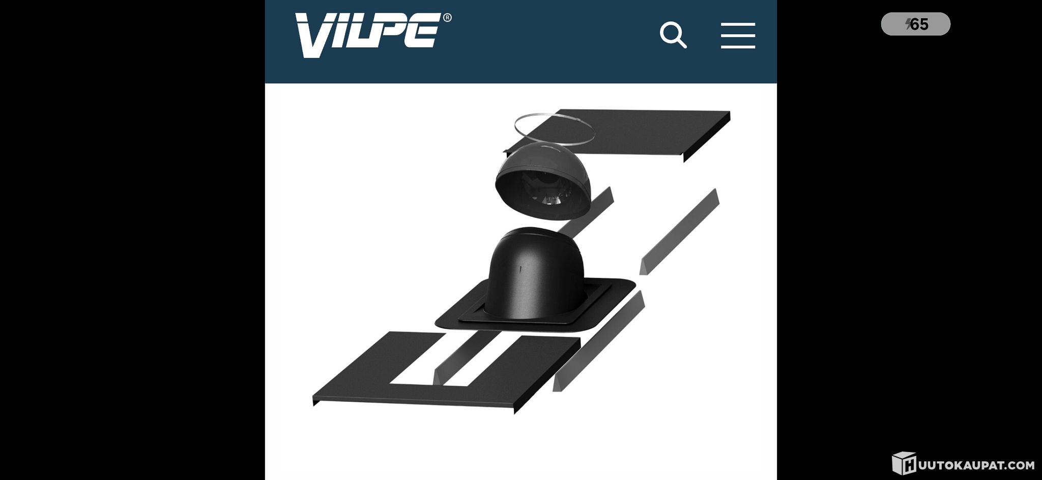 Piippu-läpivienti pyöreälle piipulle Vilpe No. 1, tiili- ja peltikatoille, Ø200–265mm piipuille, musta