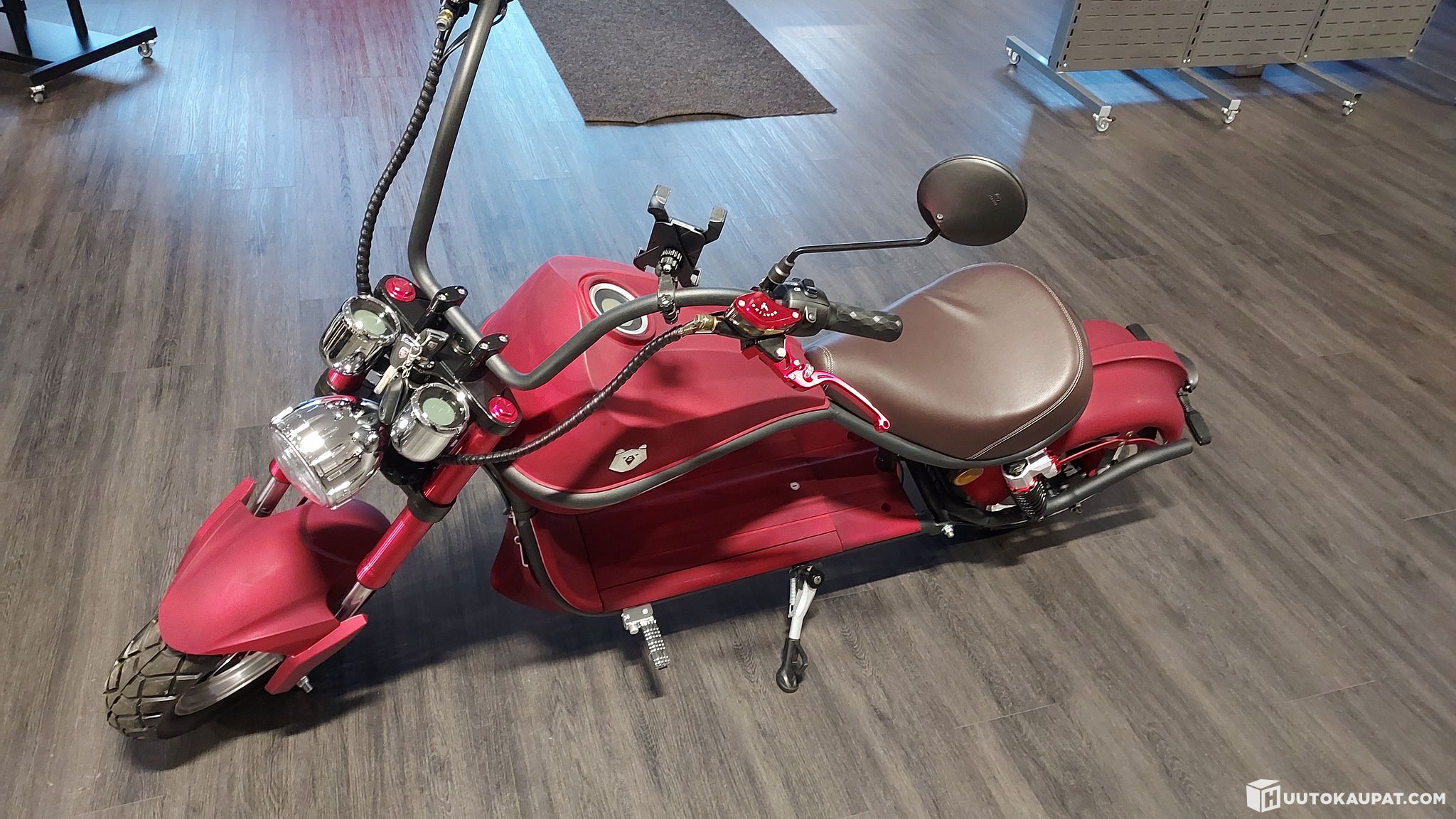 Tämä Kruiseri on lisävarustettu suurimmalla 1,2kWh akulla, puhelintelineellä sekä peiliparilla