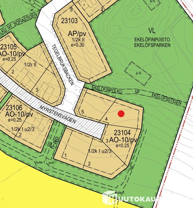Tontin K23104T4 pinta-ala on 804 m2 ja rakennusoikeus 201 k-m2.