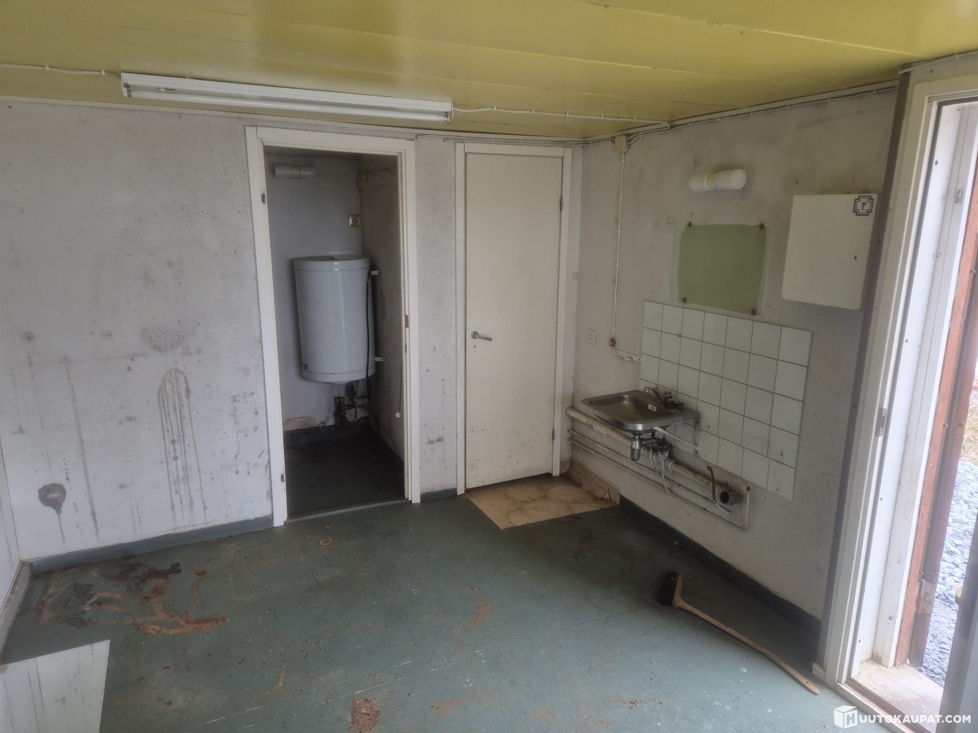 Huutokaupataan eniten tarjoavalle vanha työmaaparakki joka on nähnyt paljon elämää, ja jonka sisällä haisee home.