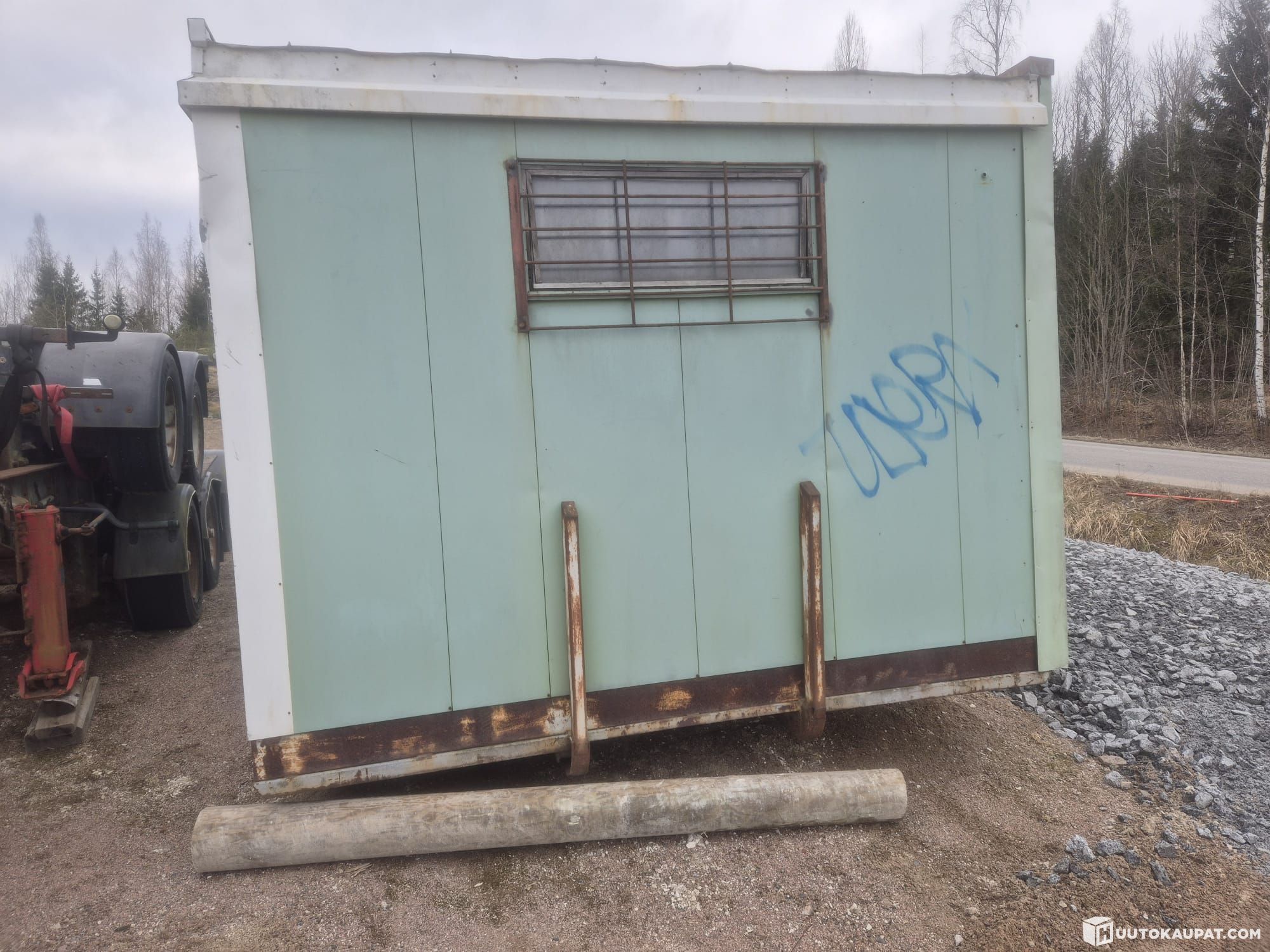 Alla vaihtolavakiskot, ja ulkopinta peltiä.