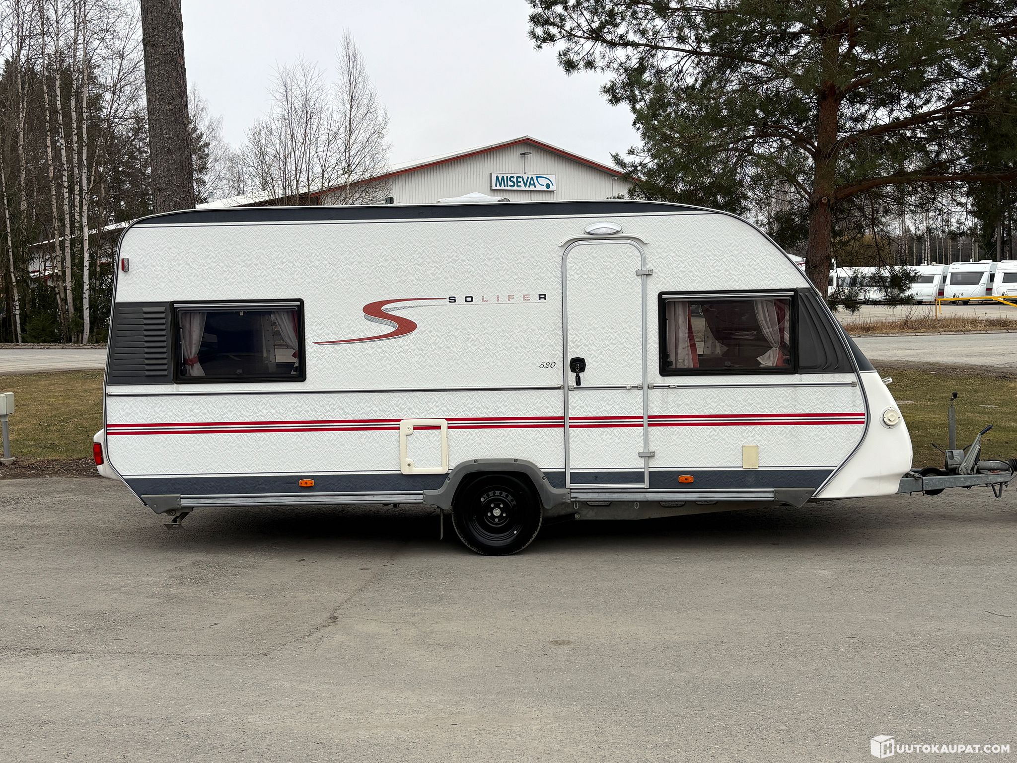 Perus siisti Solikka seuraavalle karavaanarille. Yleisilme ihan ikäisensä oloinen luukuunottamatta takaseinän alaosaa minne ilmeisesti tullu sen verran pökkaisyä vuonna 2018, että Trafitiedoissa on vaurioituneena poisto tieto. Palauteltu takaisin liikenteeseen rekisteröintikatsastuksella vuonna 2019. Remonttijäljet näkyvät edelleen hipiässä, mutta hyvin on palvellut käyttäjiään sen jälkeen. Vaunun etuosassa on U-ryhmä mistä saadaan sijattua vuode kahdelle henkilölle. Keskeltä löytyy keittiö ja kylppäririlat. Takana on poikittainen vaunun levyinen sohva mistä saadaan levitettyä parivuode. Yläkaapeista saadaan värkättyä vielä yksi lisävuode (80kg kilorajoitus), mutta tähän vuoteeseen ei ole patjoja vaunussa mukana. periaatteessa siis vuodepaikat löytyvät jopa viidelle henkilölle. Vaunu on juuri katsastettu.