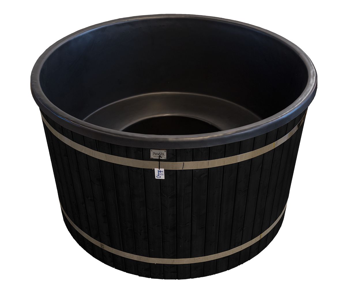 Valmistamme kylpytynnyreitä usealla eri väriyhdistelmällä, mutta nyt huutokaupattavan kylpytynnyrin panelointi on musta ja altaan sävy mustagraniitti.