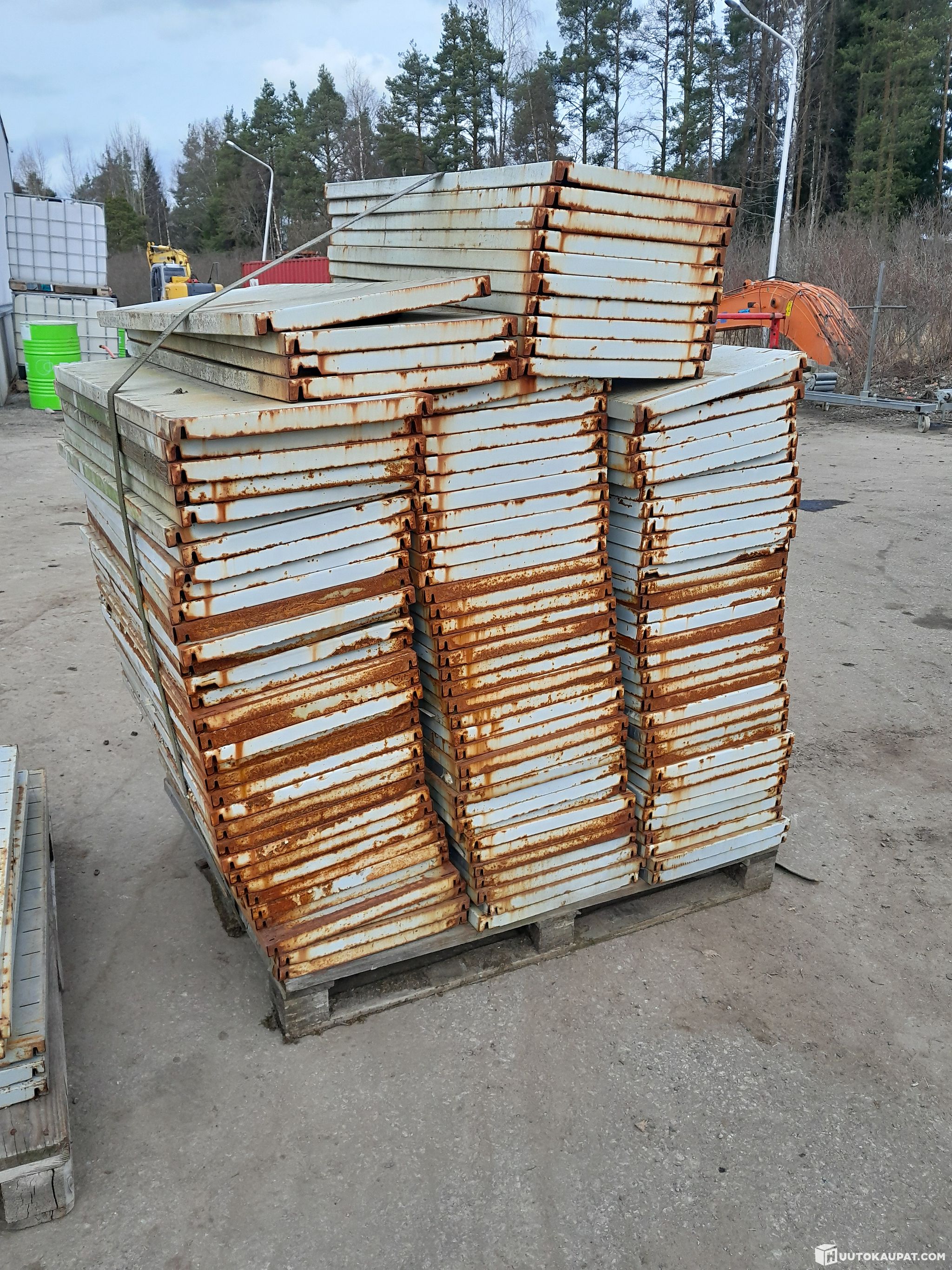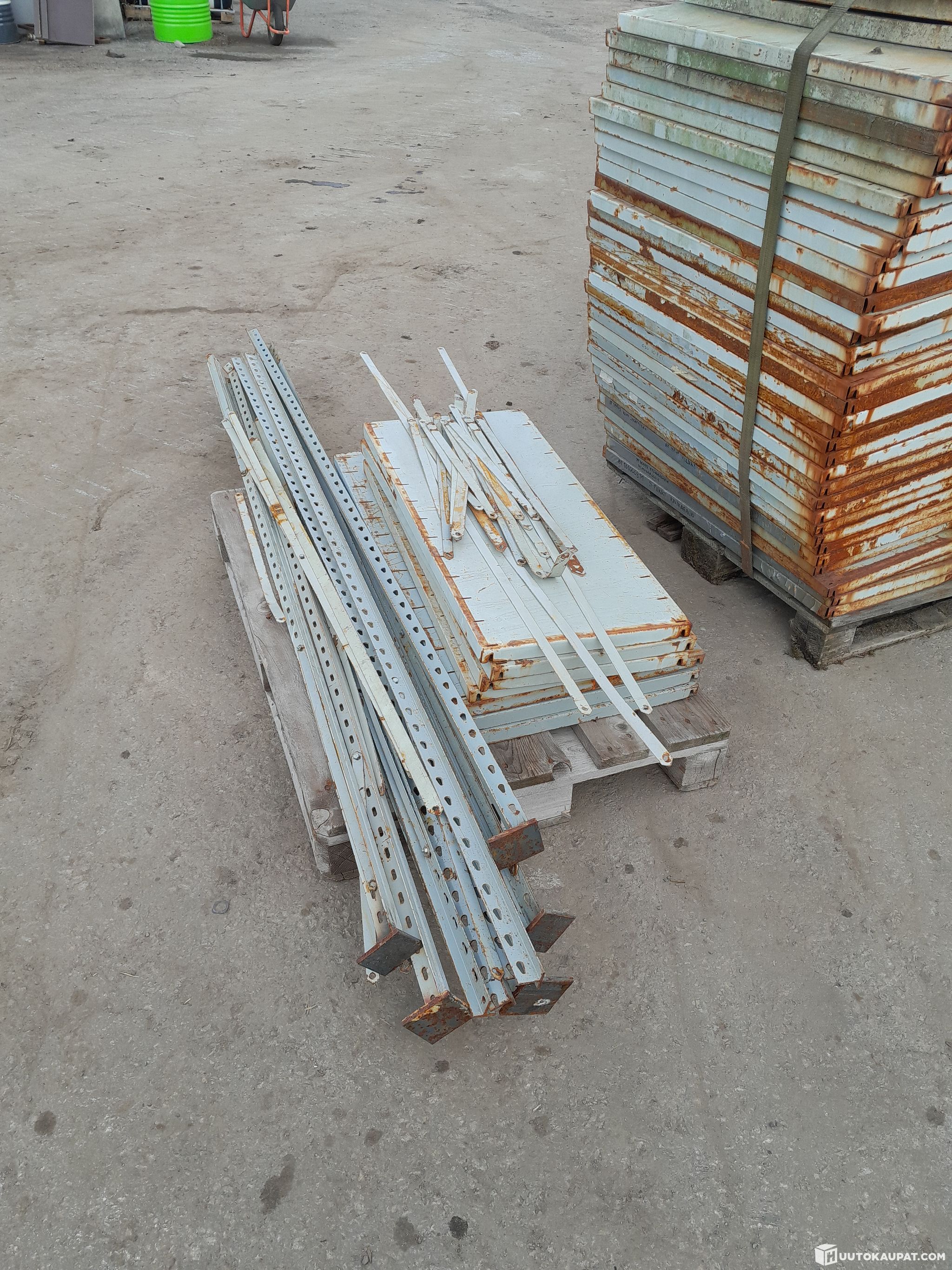 Vanhoja varastohyllyjä lavallinen.