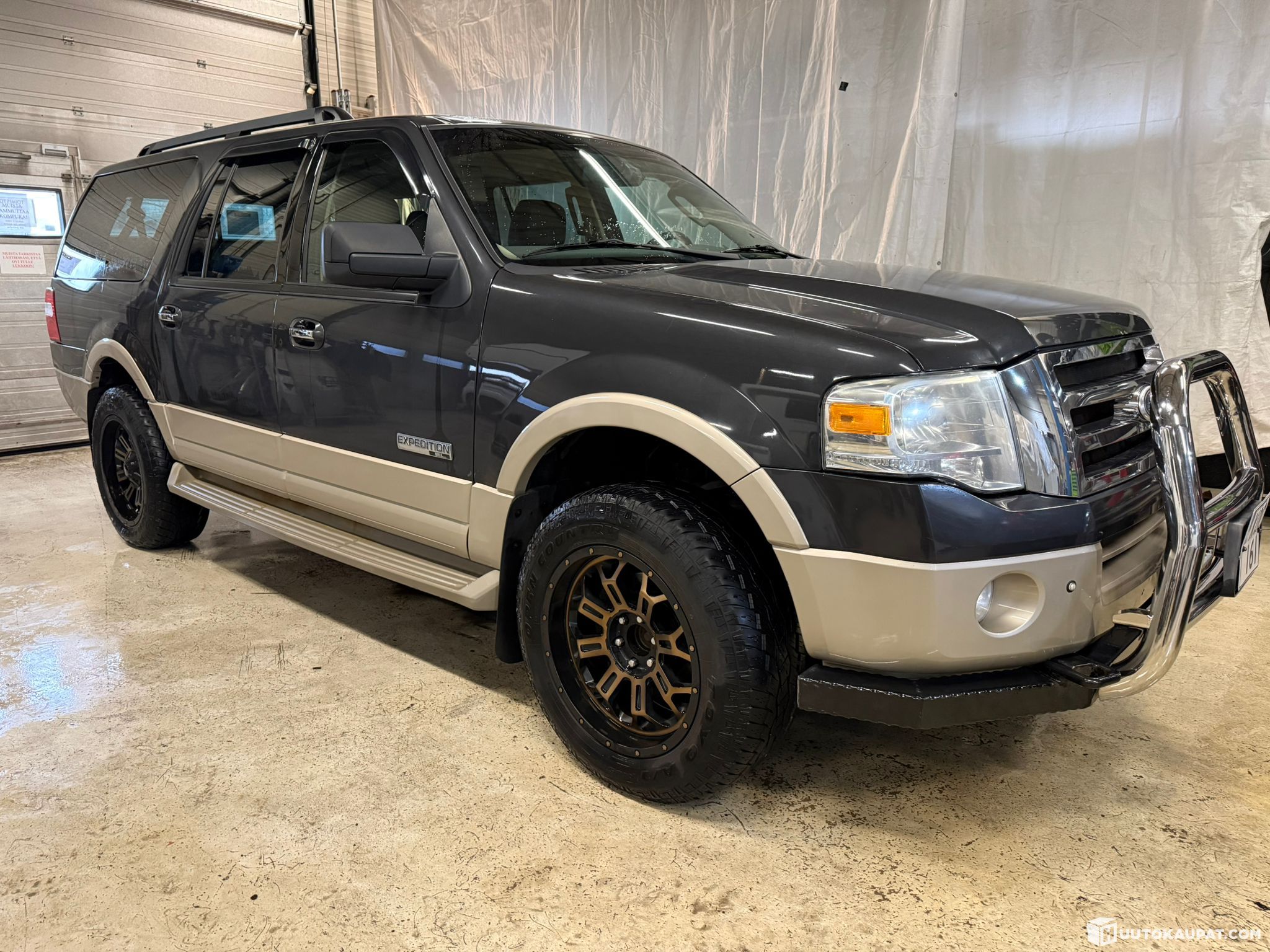 Myydään Ford Expedition XLT 5.4 V8 Eddie Bauer. Harvinaisempi erikoisversio on seitsenpaikkainen kuorma-auto. Näitä on harvoin tarjolla ja tuote on oikein kehityskelpoinen yksilö. Vielä olisi mahdollista päästä omalla autolla American Car Showhun kuokkimaan! Tässä Eddiessä on hieman projektia leimalle, joista vikakohdassa lisää. Autossa varusteena mm. ilmastointi, vakionopeudensäädin, sähköpenkki, navigointi, audiojärjestelmä ja vetokoukku. Autossa on myös neliveto, josta voi valita takavedon kulutuksen säästämiseksi tai esimerkiksi hitaan nelivedon. Katso kuvat, lue ilmoitus.
