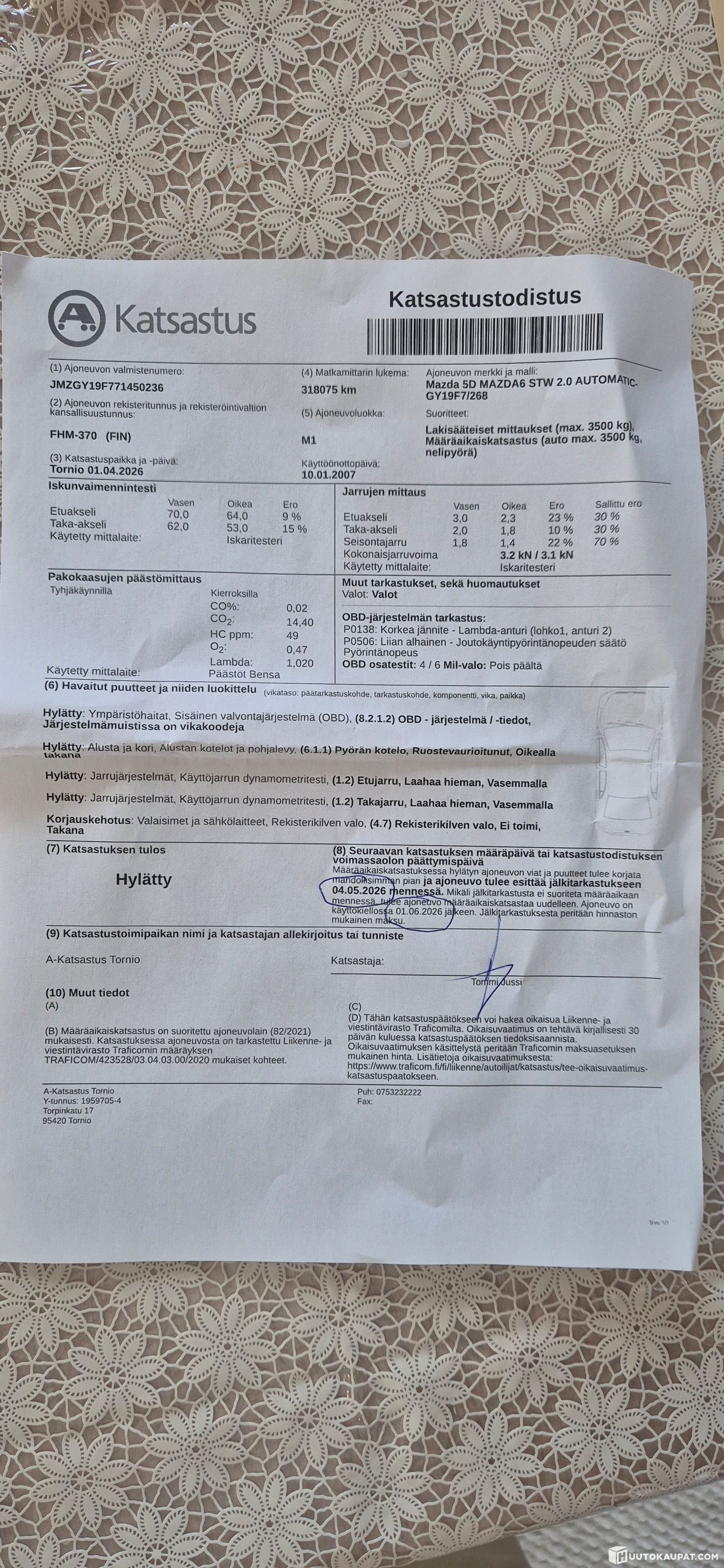 1.4.2026 Määräaikaiskatsastus hylätty