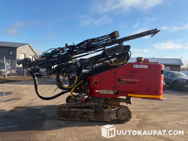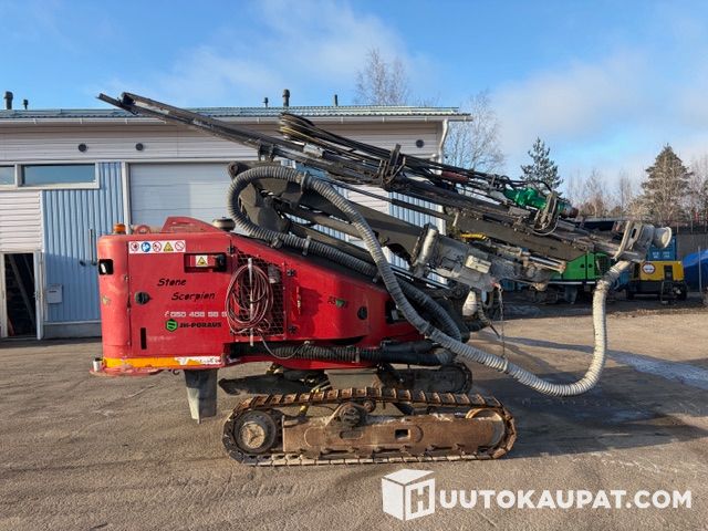 Hyvä kuntoinen ja varma toiminen scorpion valmiina kivelle. Montabert hc28 vasara asennettu noin 2,5v sitten ja on juuri ollut huollossa, Scorpionin moottoriin vaihdettu polttoainesuuttimet viime huollossa. Puomissa rollikka joten poraaminen onnistuu mihin suuntaan vain sekä 1 kangen kasetti. Koneessa myös rasvari ja smirgeli. 4
