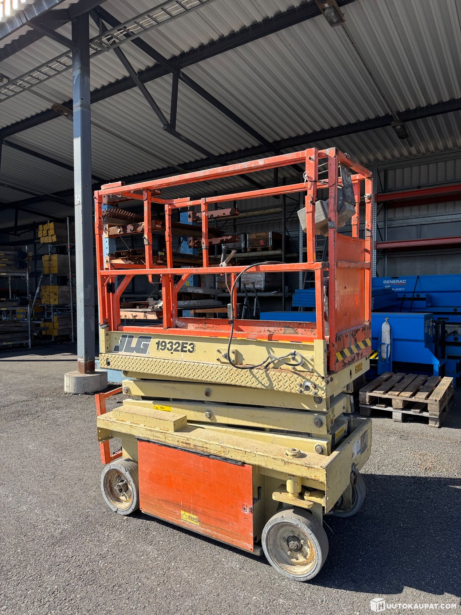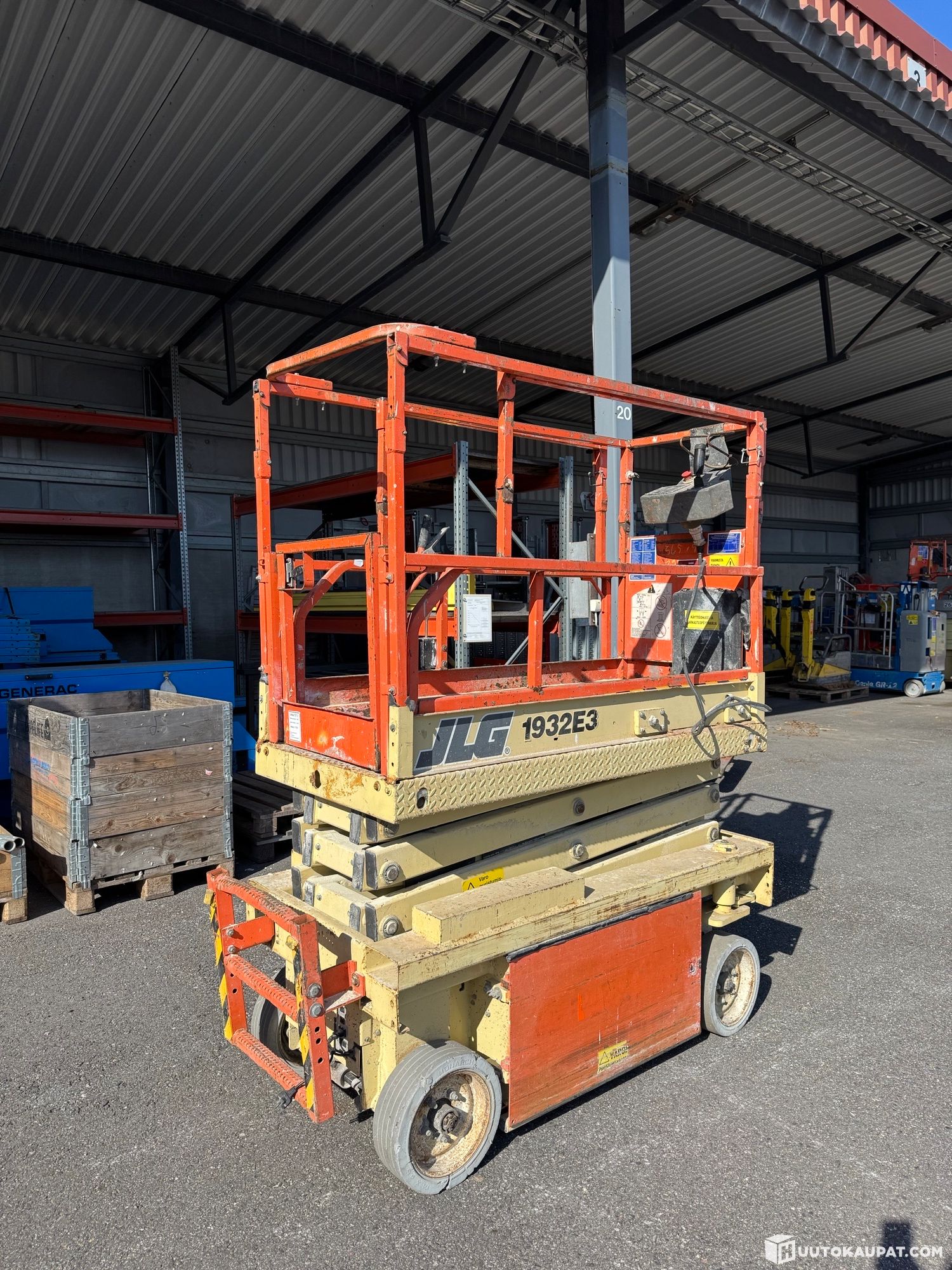 Vanha henkilönostin kyseessä, joten naarmuja, kolhuja ja kulumaa on joka puolella. Nostimeen vaihdettu uudet akut sekä uusi joystick. Koeajolla kaikki toimi.