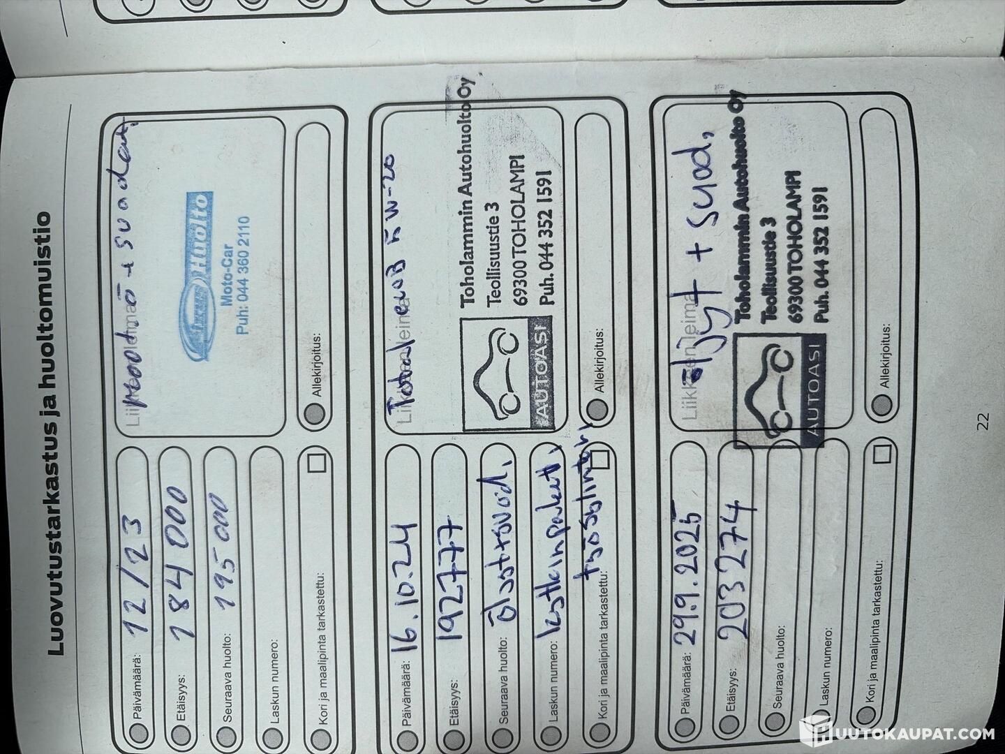 Huoltokirja (Katso kuvat)