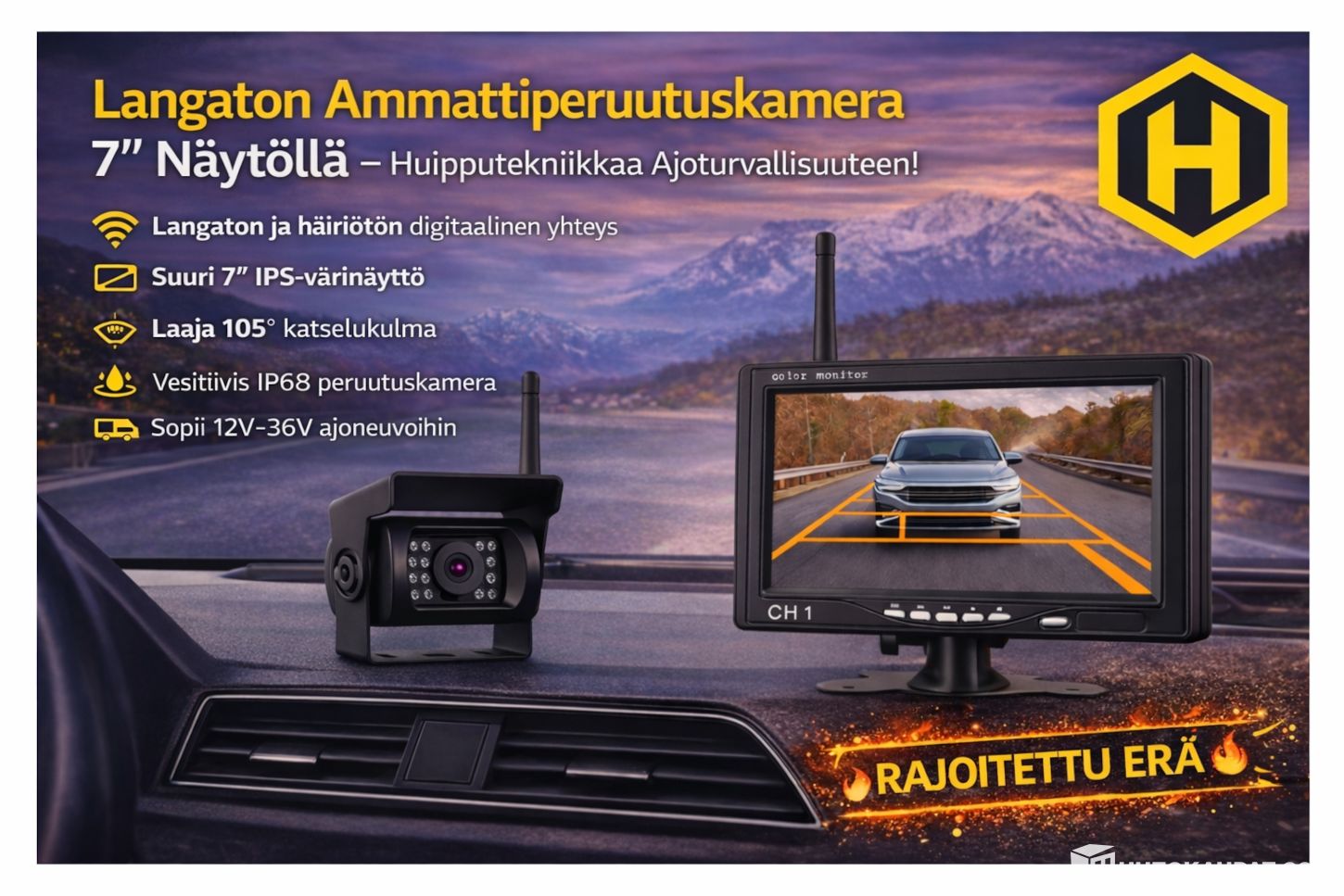 Hakusanat: langaton peruutuskamera, 7 tuuman nÀyttö, ammattilaiskamera autoihin, IPS nÀyttö ajoneuvoihin, kuorma-auton peruutuskamera, matkailuauton kamera, langaton ajoneuvokamera, parkkinÀyttö, digitaalinen kamerajÀrjestelmÀ, auton turvakamera, peruutusavustin, peruutuskamera 1080p, vedenkestÀvÀ peruutuskamera, helppo asennus, laadukas peruutusjÀrjestelmÀ