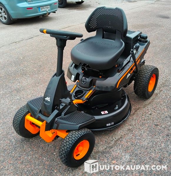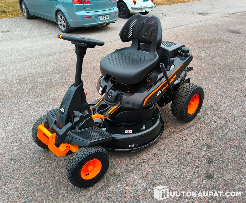 Erittäin siistikuntoinen McCulloch M105-77X -ajoleikkuri. Kompakti ja näppärä kone pihanhoitoon, mutta samalla tukevarakenteinen ja hyvännäköinen kokonaisuus.