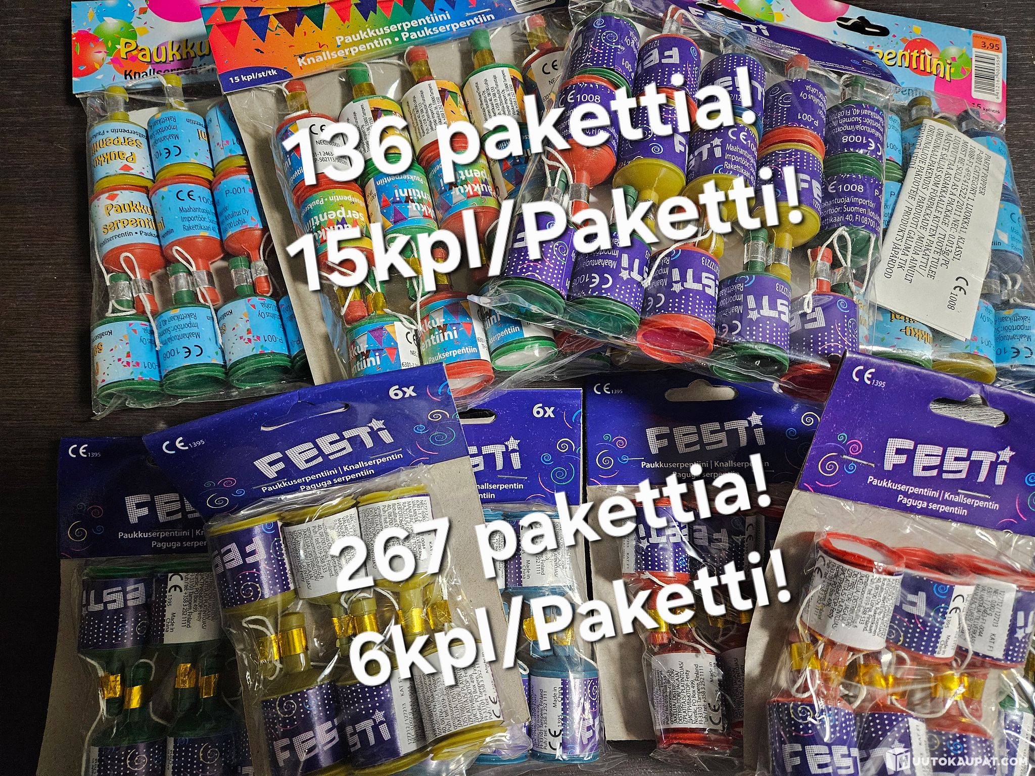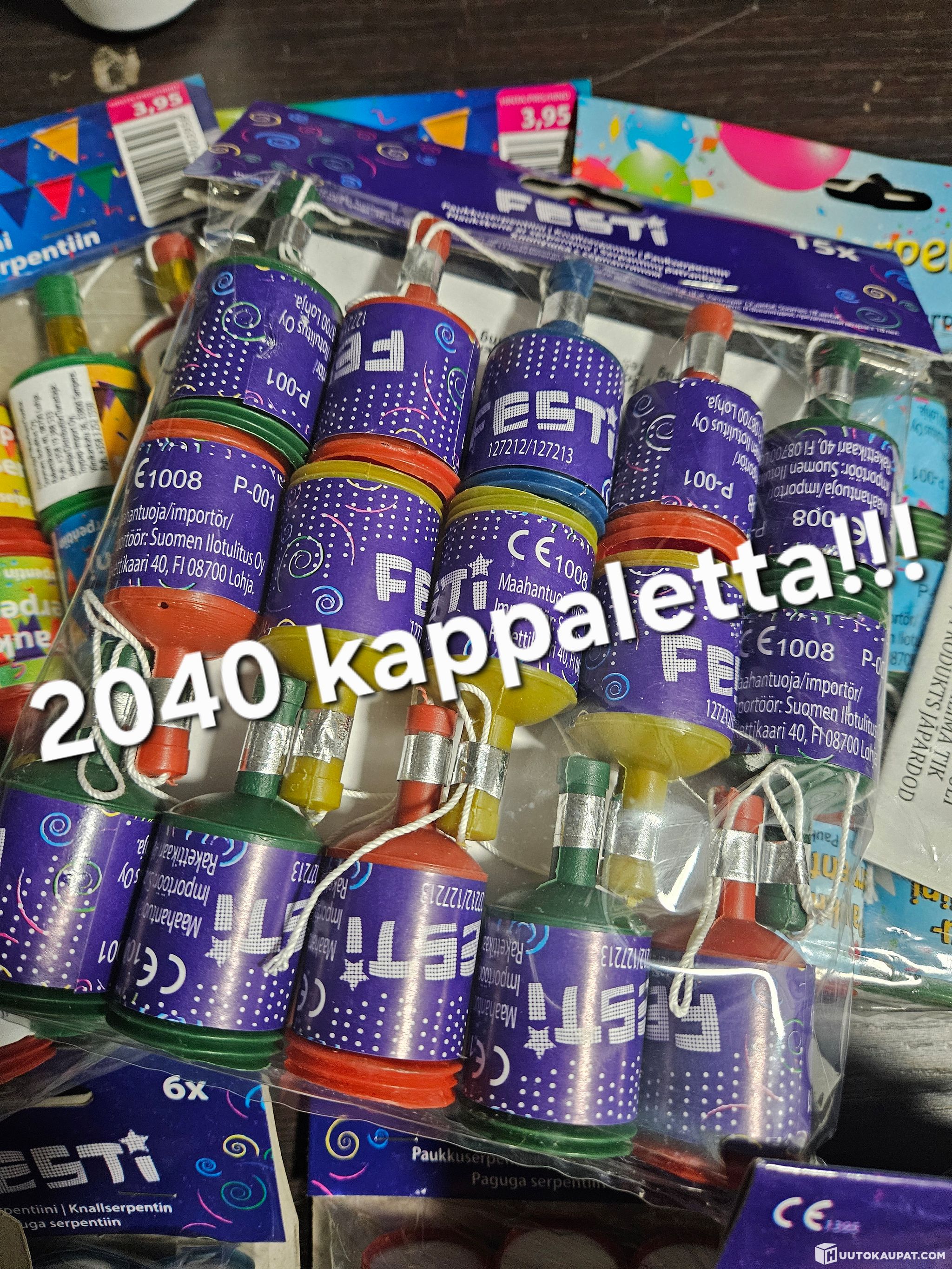 136 pakettia jotka sisältää 15kpl/paketti, eli yhteensä 2040 kappaletta paukkua!