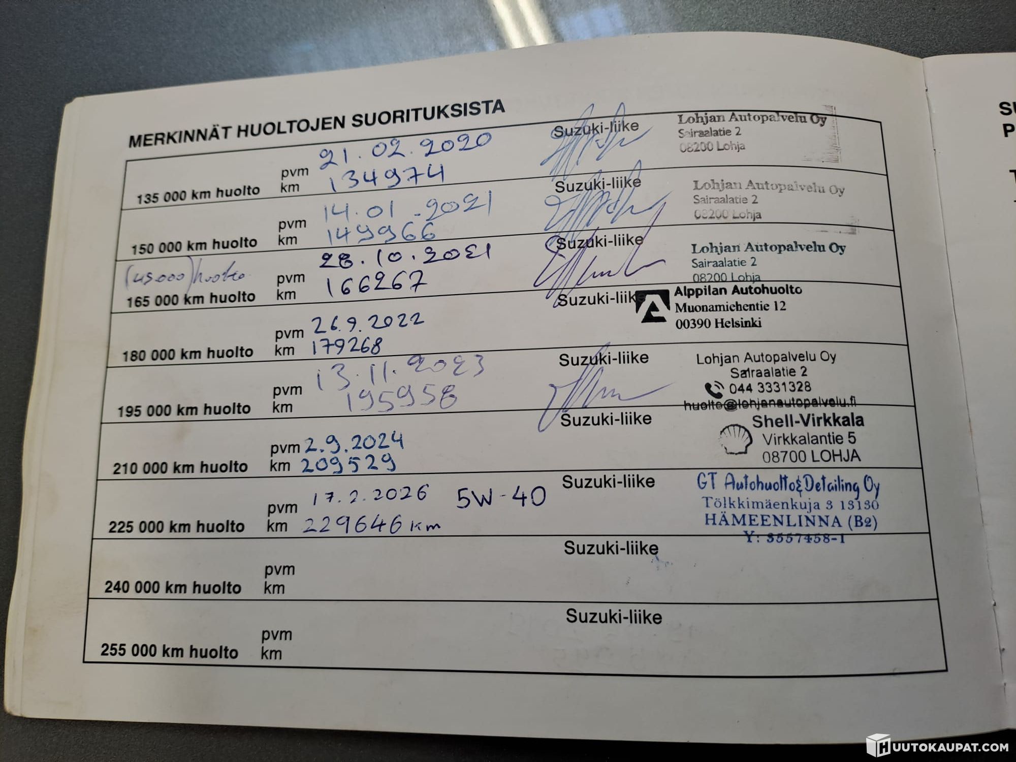 -Huoltokirja, viimeisin huolto 2/26. Huollettu säännöllisesti joka vuosi.