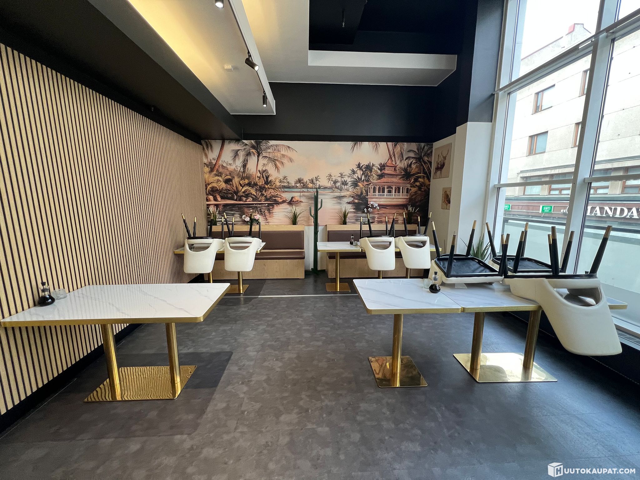 Kalusto myydään siinä kunnossa kuin se on. Sopii erinomaisesti ravintoloille, kahviloille, tapahtumakäyttöön tai uudelleen sisustukseen.