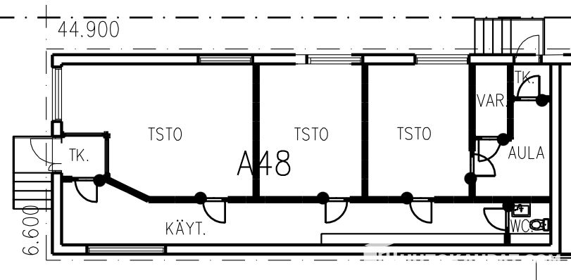 Huoneisto on rakennettu alunperin rakennusliikkeen toimistotilaksi.