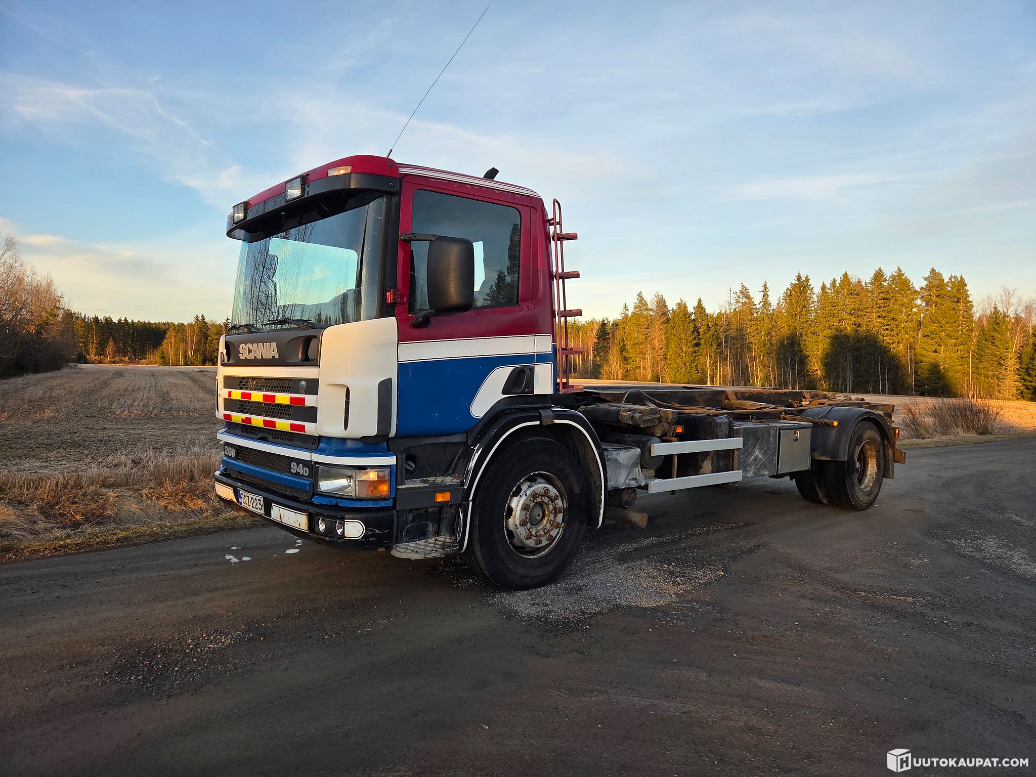 Kevään hiekat tuli ajettua joten Pikku 94 joutaa myyntiin . Kuukausi takaperin vaihdettu uusi kytkin ,asetelma sekä työsylinteri. Akut sekä ristikkoa ja mitä nyt katsastukseen oli tarve. Kolmikaato vaijerilaite 5m laitemitalla ,ei etuvastinta joten pitkänkin rahtilavan saa toki päälle. Jakopää pumppu ,lisähydrauliikka takalaidalle ja varmaankin myös nosturille, näitä ei ole testattu ja vaatii varmasti jotain hellyyttä toimiakseen. Palvellut kuukauden hyvin käytössä ,siistittävää varmasti löytyy. Jarrut levy-levy ,jouset ilma -ilma.
