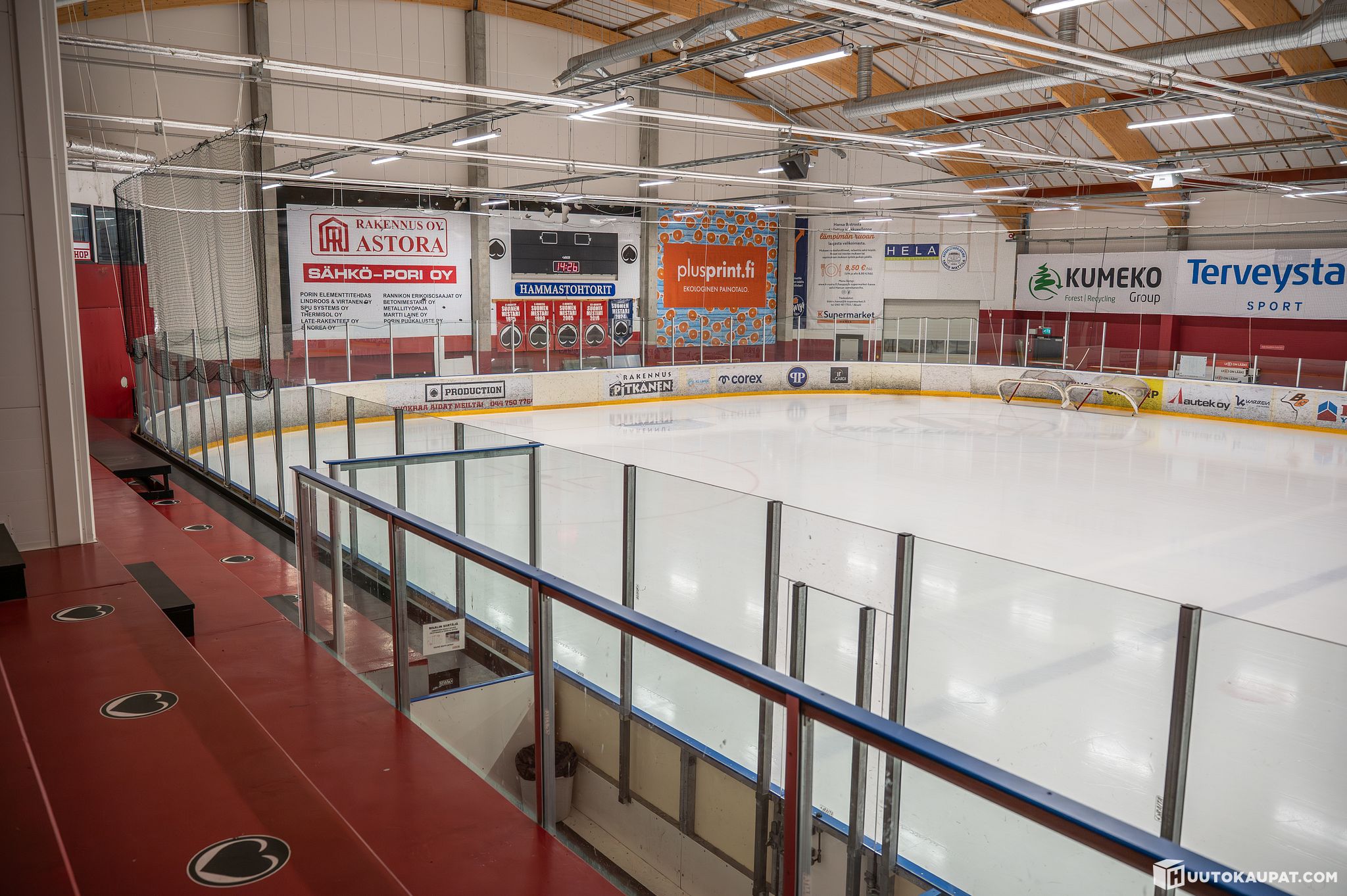 Jääkiekko kaukalo Astora Areenalla Porissa. Koko 28 m x 58 m. Vuonna 2011 hankittu uutena ja asennettu, koko ajan samassa paikassa. Myydään purettuna tai purkutyö voidaan sisällyttää hintaan. Käytössä tällä hetkellä esimerkiksi U18 sarjassa. Ei jousto-kaukalo. Kaukalon suojalasit sisältyvät hintaan (pl aitiot).