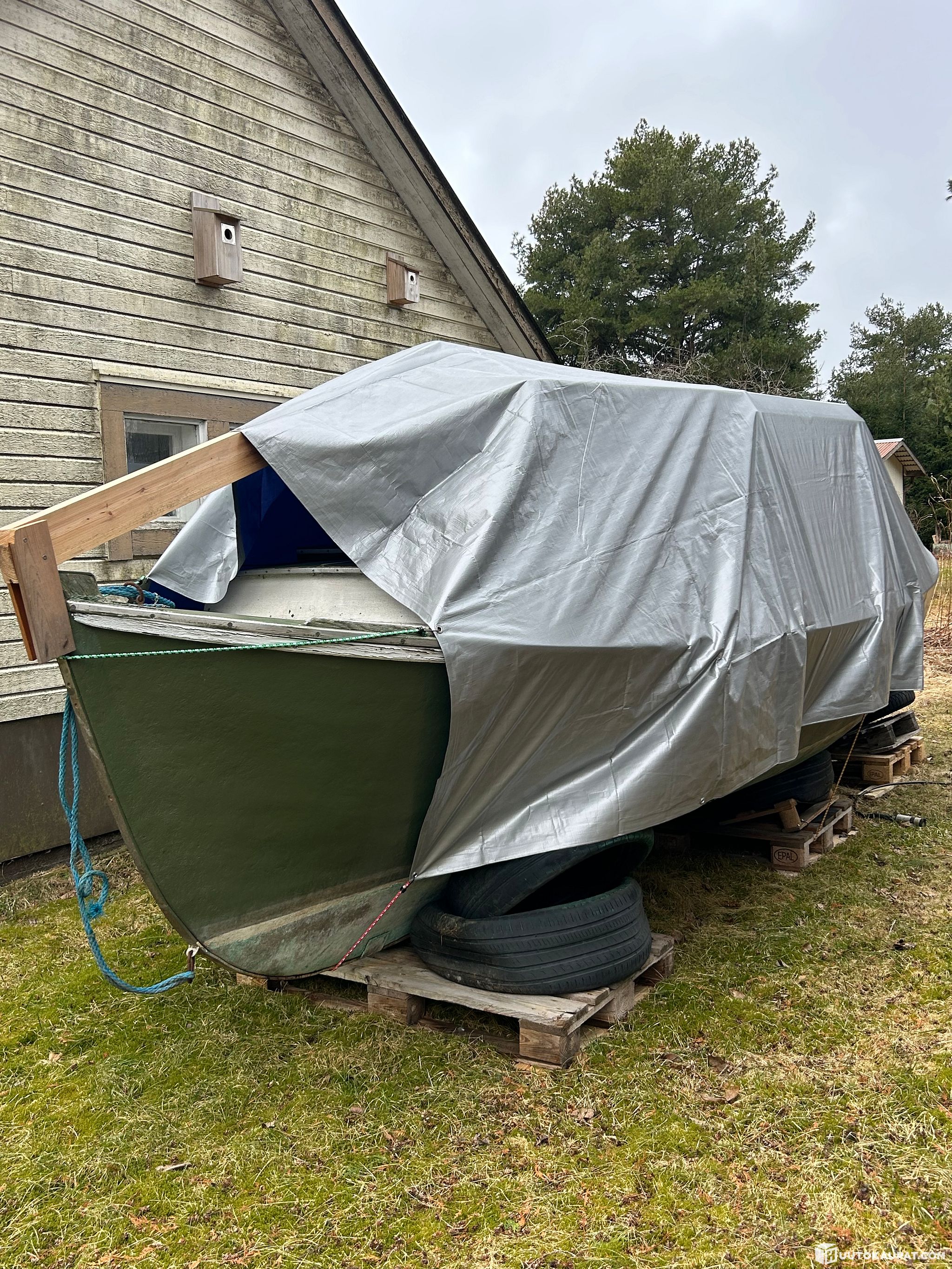 Myydään kunnostettavaksi kesän vesille. Vene nostettu vesiltä toimivana, mutta seissyt muutaman vuoden. Moottori ja vaihteisto pyörii, mutta ei kokeiltu käyntiin. Rosterinen polttoainetankki. Moottori Volvo Penta MB 10 A ja vaihteisto Volvo Penta MB.