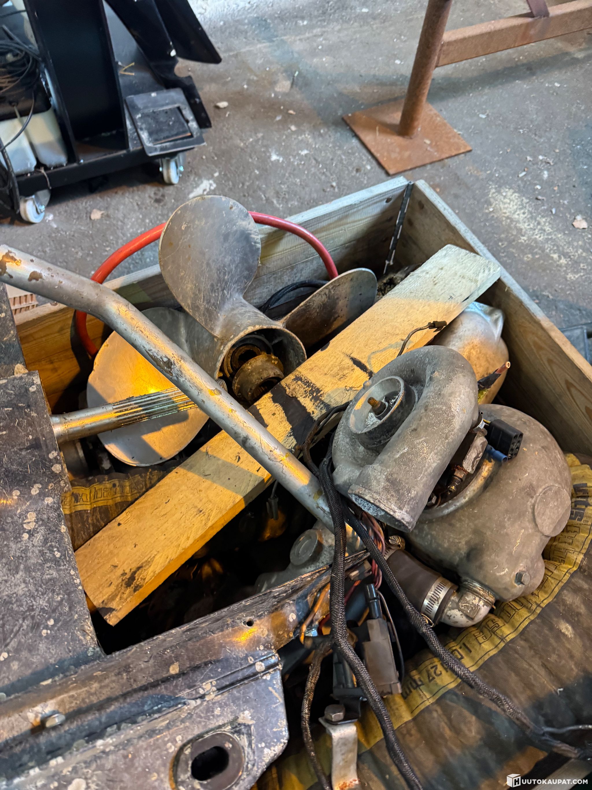 Moottori puuttuu. Muutoin ehjä. Seisonut 2 vuotta sisällä hallissa ja vuoden ulkona katoksessa. Vanha vene, käytön jälkeä on. Ikäisekseen kohtuu kuntoinen vene.
