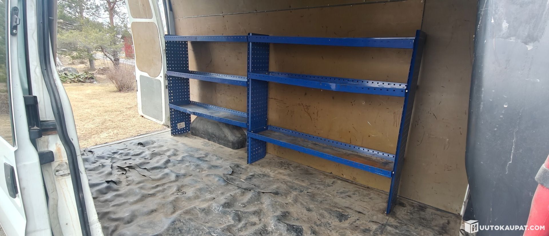 Tavaratilan lattiavanerit uusittu 2021, samalla asennettu hyllyt.