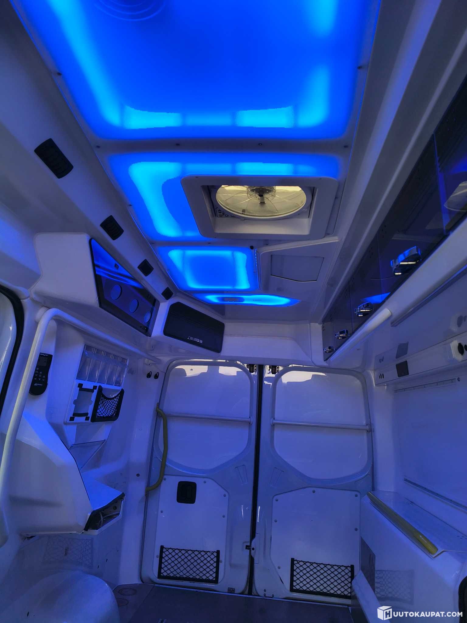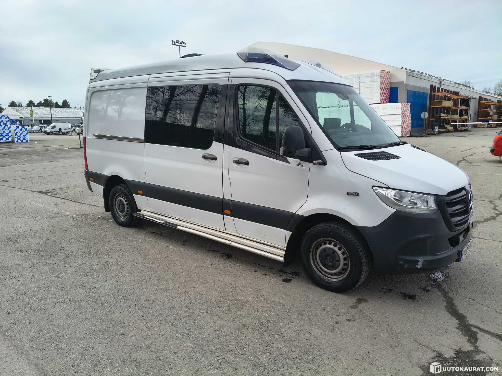 MB Sprinter 319, automaatti, vakionopeudensäädin, avaimeton käynnistys, webasto, bluetooth, lisäakku, liukuovet molemmin puolin, takatilassa erinomainen valaistus ja paljon säilytystiloja, MAXXfan deluxe tuuletin kaukosäätimellä ja sisään/ulospuhalluksella (voi käyttää myös sateella), ulkopuolella paljon työvaloja, erittäin kirkkaat lisäpitkät.