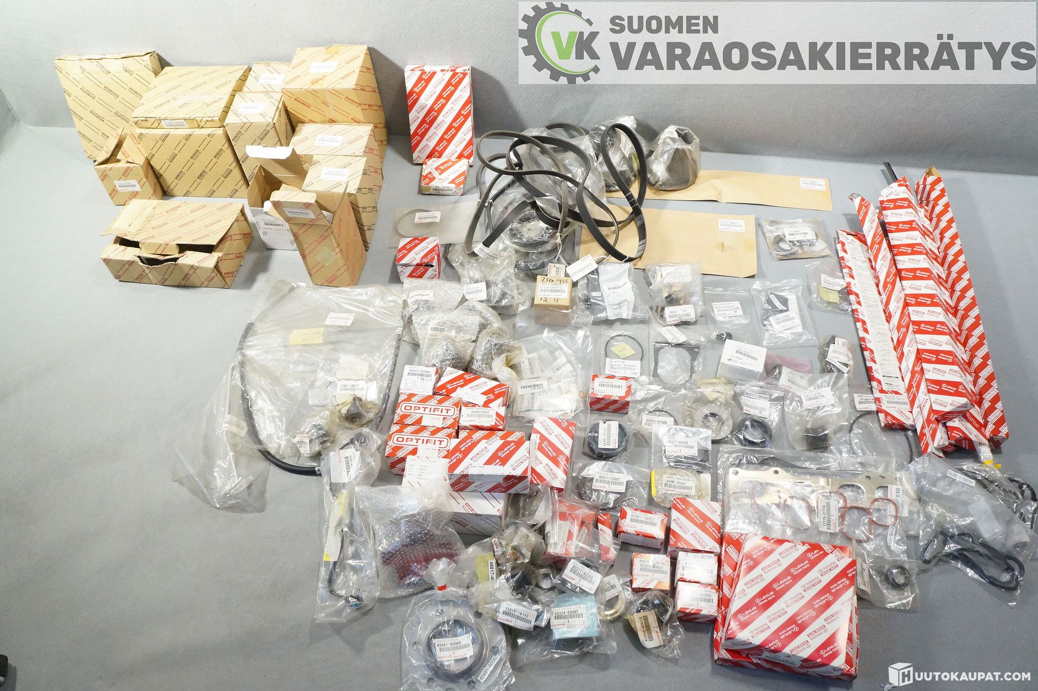 Uusia alkuperäisiä Toyota varaosia sekalainen erä. Erässä on osia vanhempiin että uudempiin malleihin. Liitteessä suuntaa antava listaus osista mitä erässä on. Listasta saattaa puuttua osa ja jotain extraa varmasti löytyy.