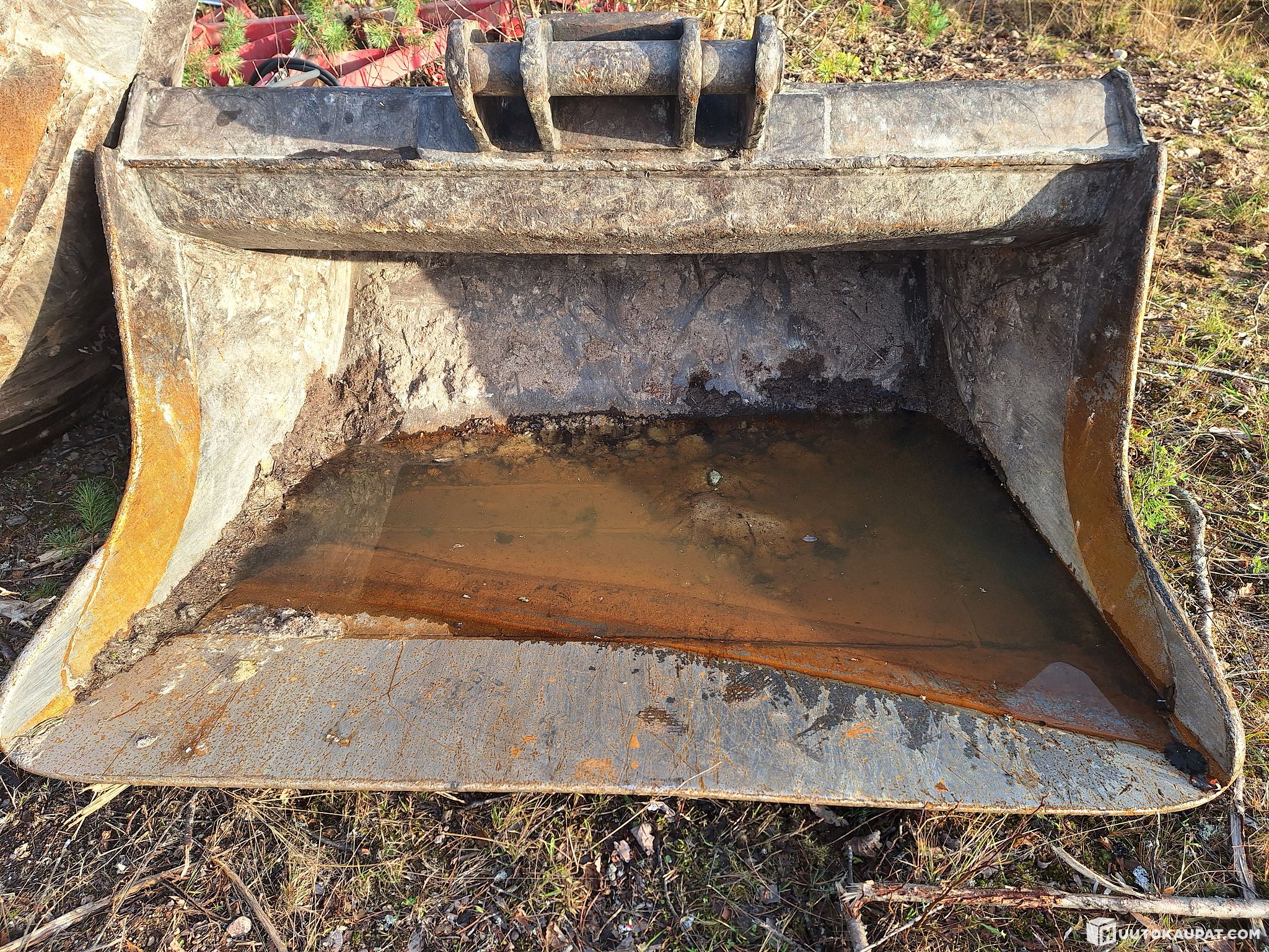 1800 mm leveä, taaksepäin kapeneva 1600mm ja noin 1040 syvä. Soveltuu encon käyttöön. Huuli 30 jossa hyvin vielä 25mm vahvuutta. Ehjä kauha. Nostetaan kyytiin.