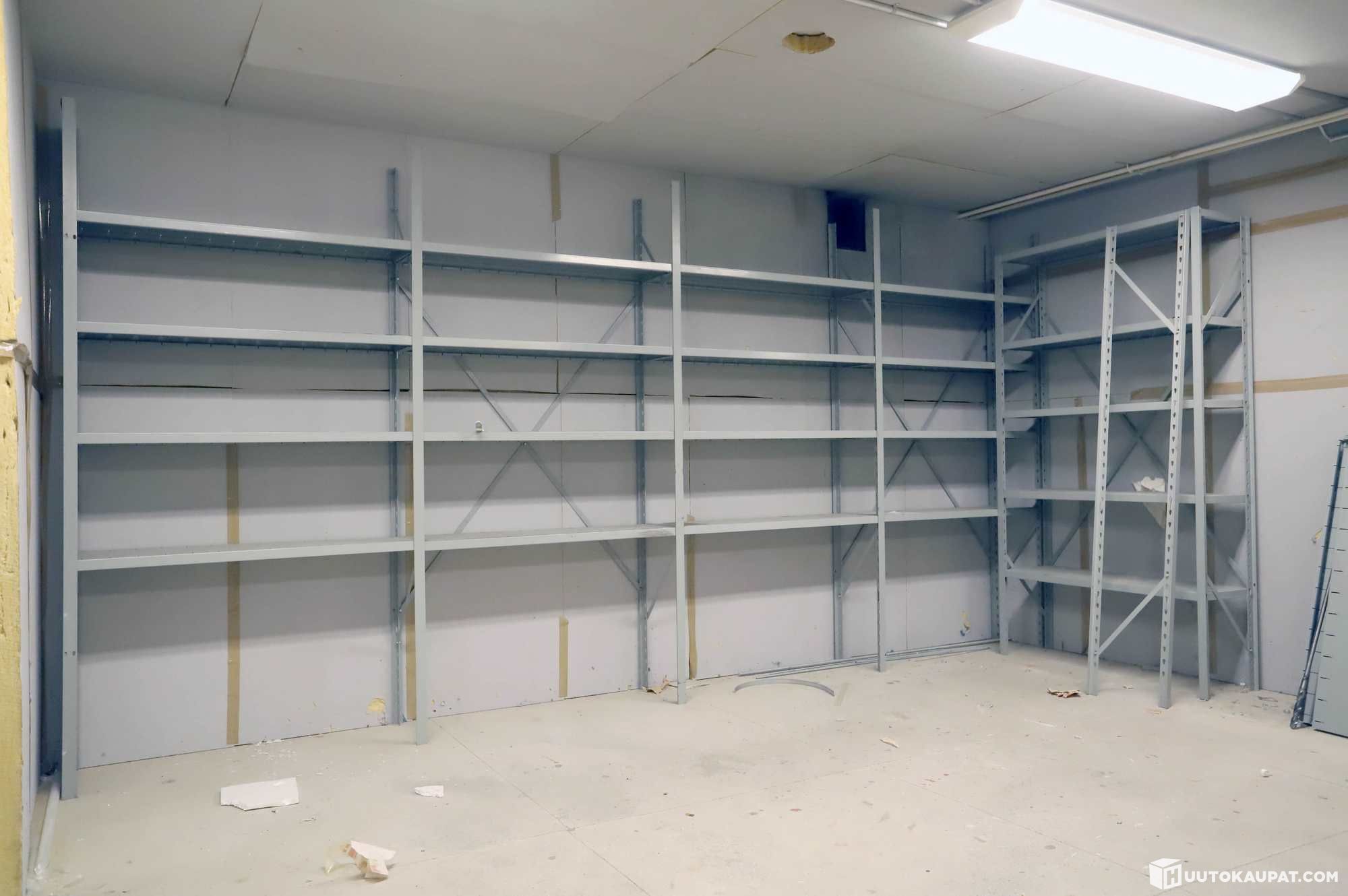 Peltihyllystöt (10 kpl päätyjä, 46 kpl hyllyjä).