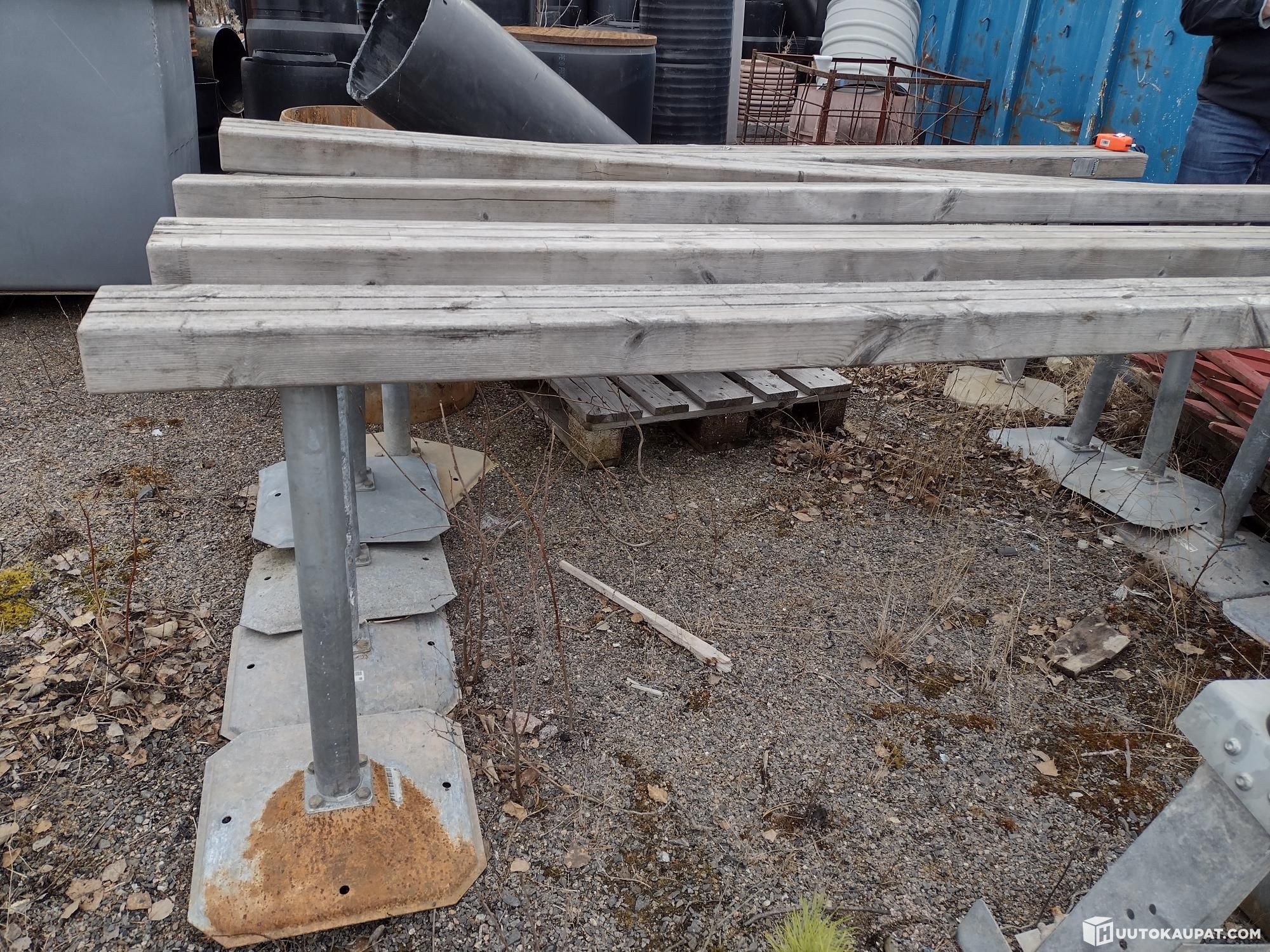 Vanhat leikkipuistoista poistetut puiset tasapainopuomit 5 kpl. Puomit ovat 2,40 m pitkiä.
