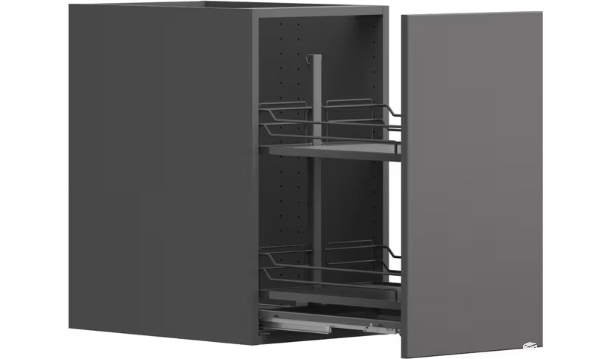 Pääset hyllyjen tavaroihin käsiksi kaapin molemmilta puolilta, ja ClickFixx-kiinnikkeiden avulla voit asentaa järjestelmän ilman työkaluja. 40 cm pöytäkaapille.
