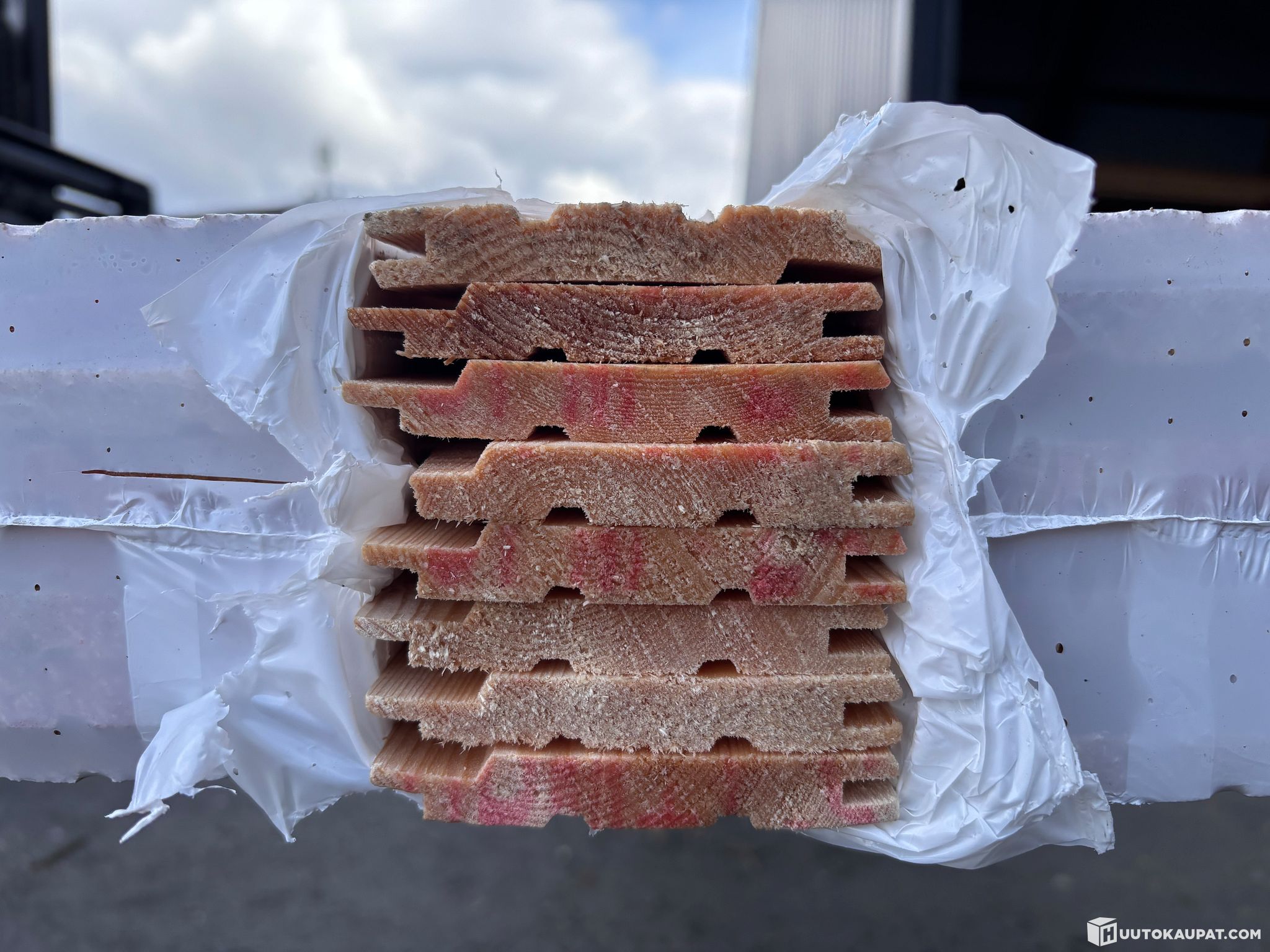 Talouslaatu, yksittäisiä käsittelyssä syntyneitä jälkiä. Lisäksi pakettien sisällä havaittiin hieman kosteutta, ei ole tutkittu tarkemmin.