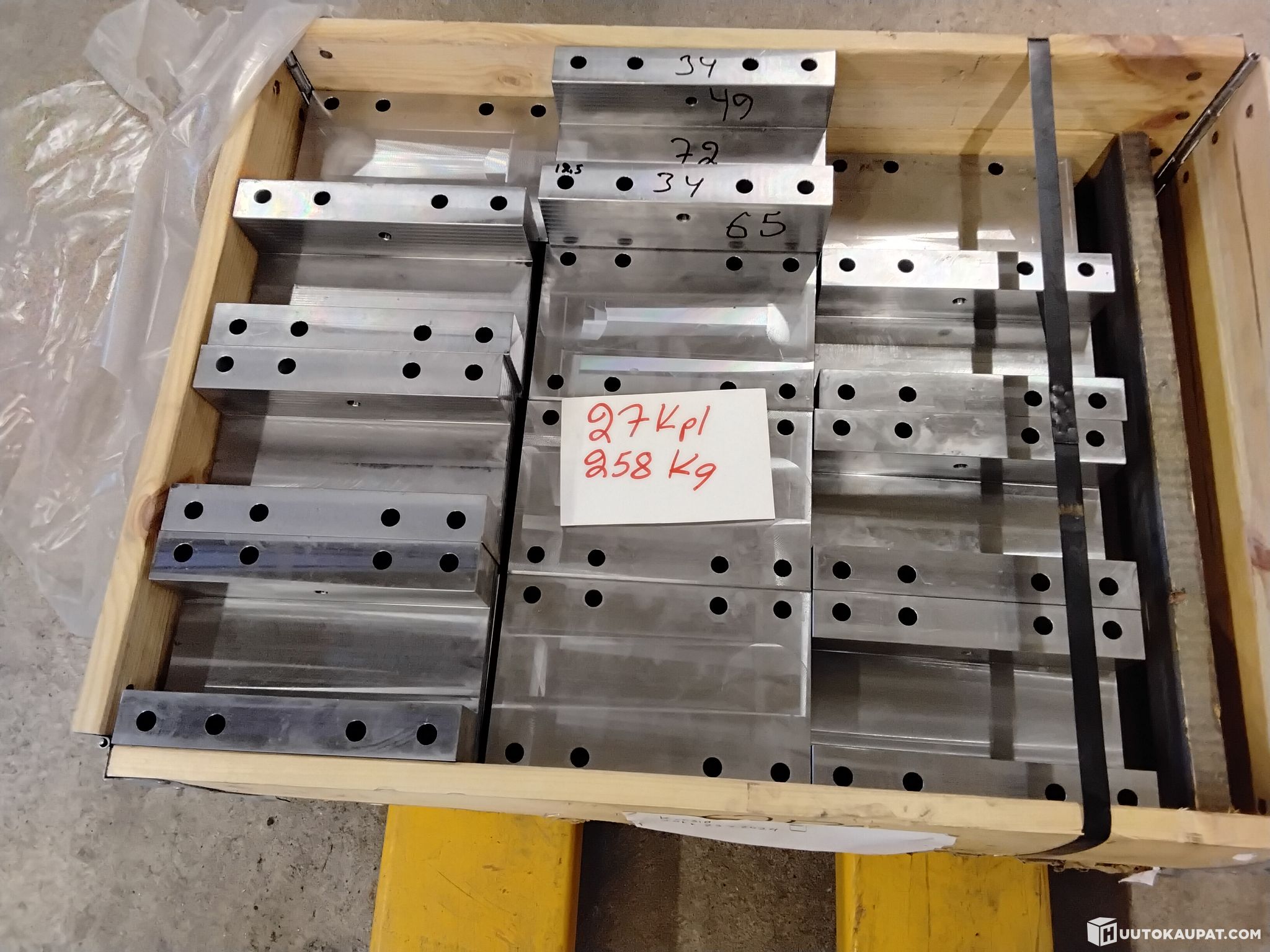 Siittä rakenteluun lavallinen osia 27 kpl . Nyt aivonystyrät sauhuumaan ja aloita rakentelu tästä. Nouto viimeistään 15.4 ellei muuta sovita. Voi tulla katsomaan kuhan sovitaan ajankohta . Mittatilustyönä teetetty eikä 150 € kpl ole riittänyt . Näistä voisi tehdä jonkin työkalun missä jokin luisti liikkuu hydrauliikalla tai paineilmalla vähän kuin epäkeskoprässissä tuossa välissä . Siihen vaan kansi päälle . Kuvassa osat on euro lavalla saat siitä mittasuhteita . jotain mittoja myös tuossa yhdessä kappaleessa .