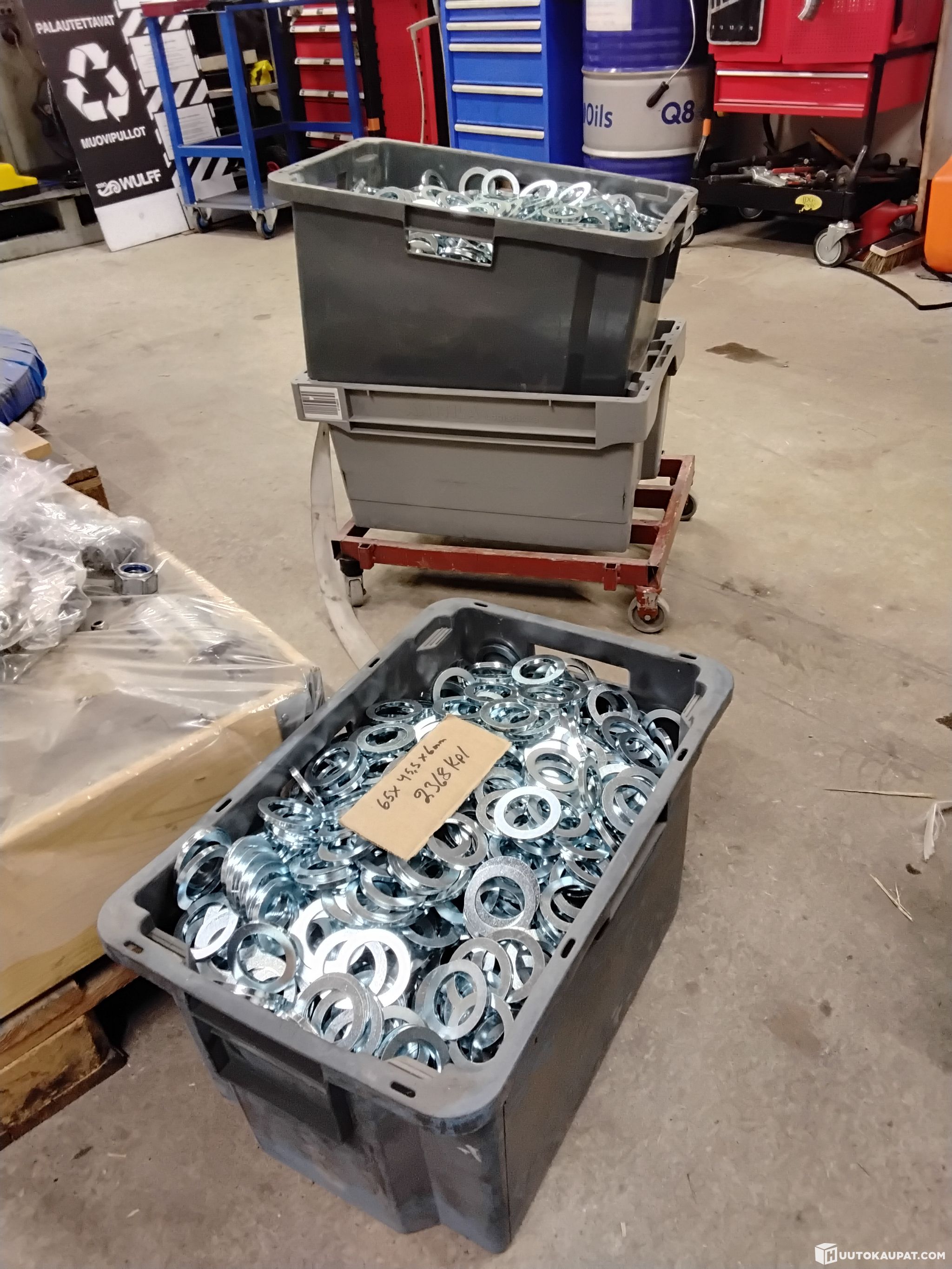 Sinkittyjä rikkoja 45,5 sisä 65 ulko ja 6 mm paksuja ja kahdessa laatikossa . Kappalemäärä on 2368 kpl. Painoa 180 kg .Isojahan nämä ovat mutta käviskö tuulivoimalan mutterin alle siihen betonijalkaan . Sopii moneen paikkaan ja moneen käyttöön .Ehkä .