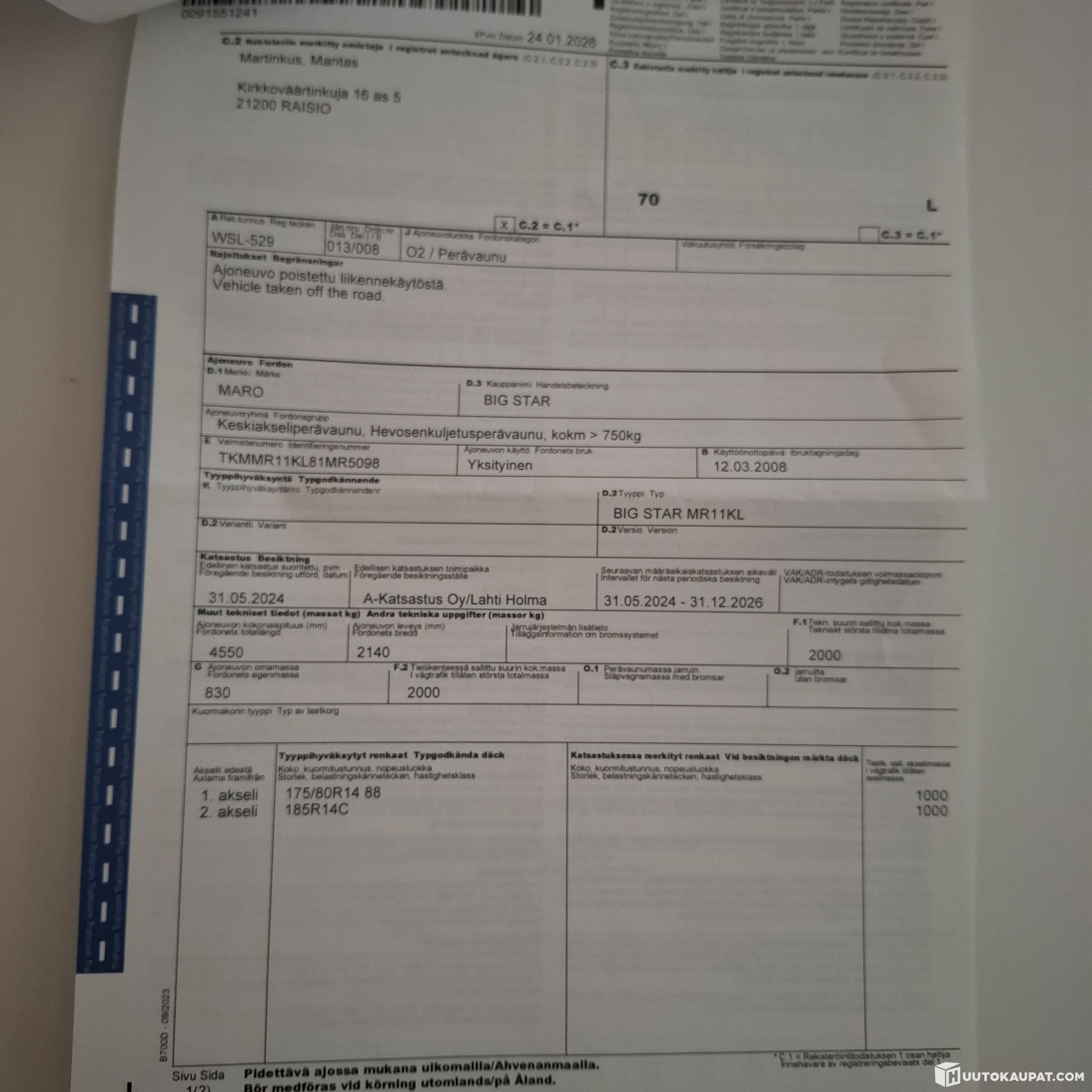 Trailerikeskus Siikala Oy ilmoittaa, Huutokaupat.com myy