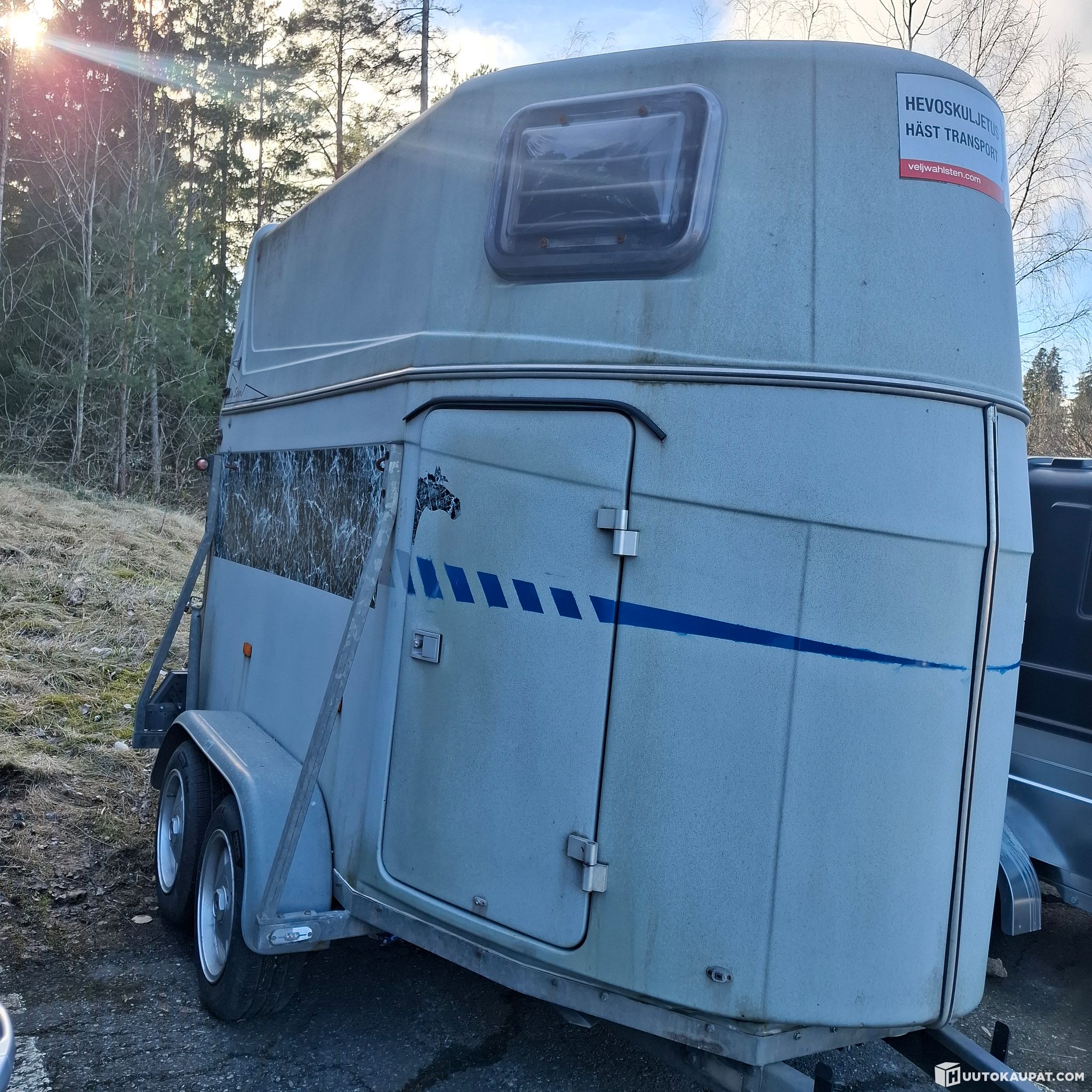 Kahden hevosen peräkärry, korjattu, uudet takaportin sylinterit, uudet renkaat, hitsattu eteen, mutta ei maalattu..