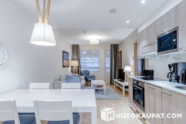 Moderni ja viihtyisä huoneisto, jossa makuuhuone, olohuone, tupakeittiö ja kylpyhuone