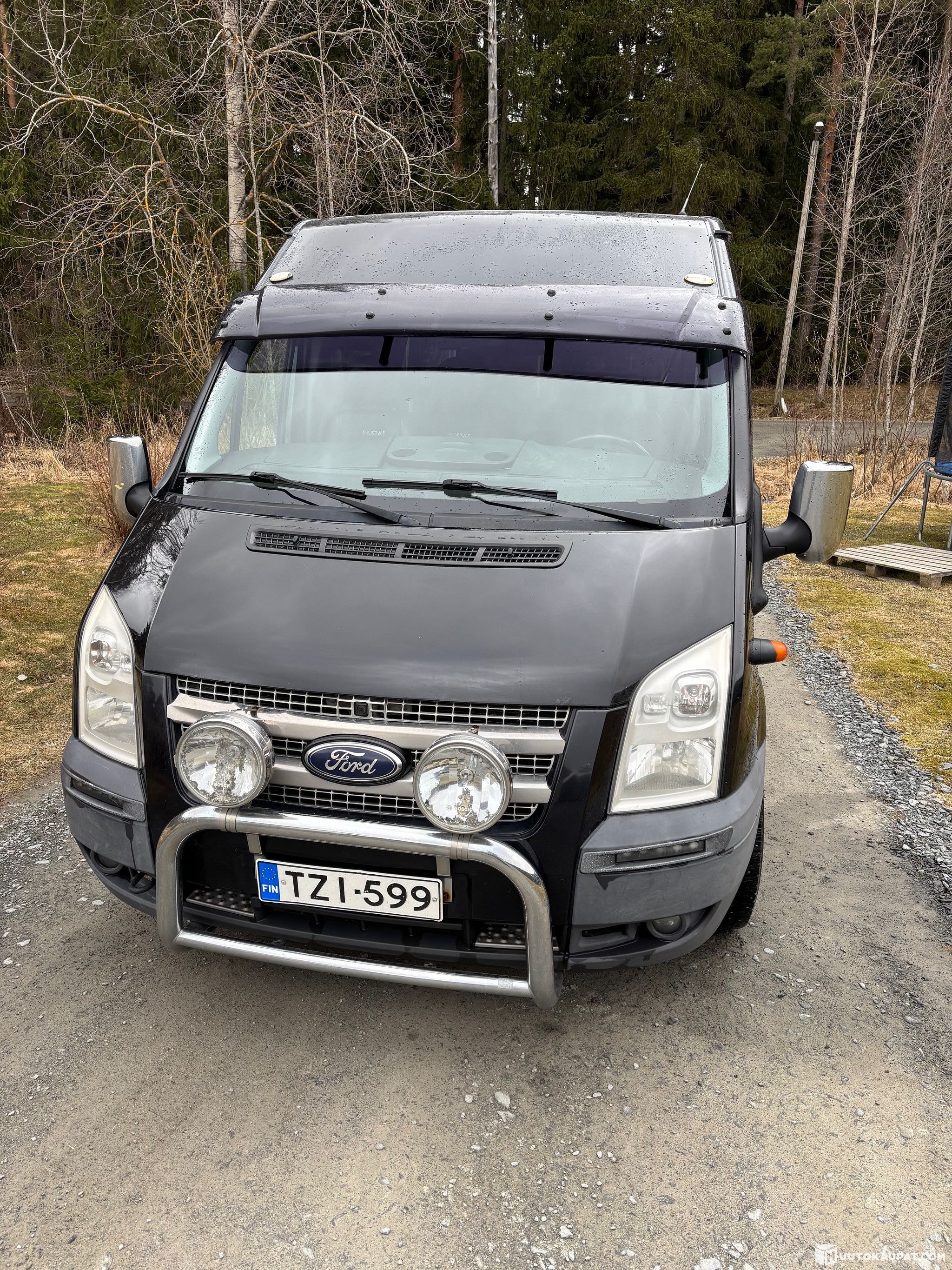 Myydään korjattavaksi pitkä Ford Transit, Prostylen sisustama pikkubussi, rekisteröity 1+8 henkilöautoksi.
