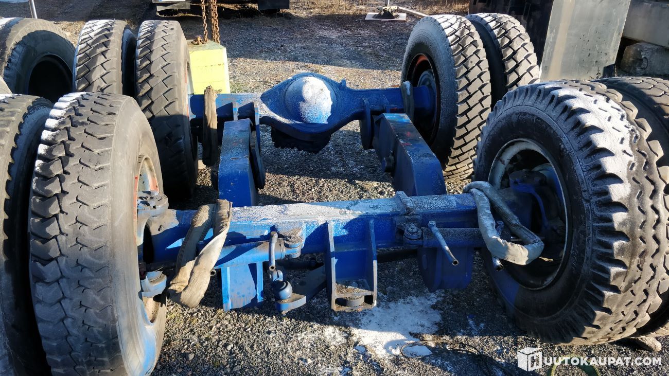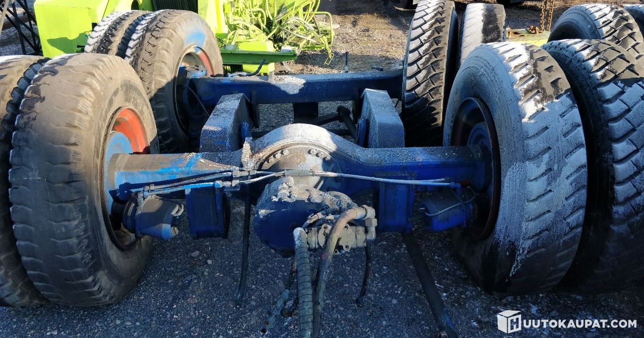 Vahva tekoiset tandem akselit, ovat olleet 60 ton painavan nosturin alla, joten kantavuus on hyvä. Hydraulinen veto ja ohjaus molemmissa akselissa. Akseliväli 1600 mm - Leveys renkaista mitattuna 2950 mm.
