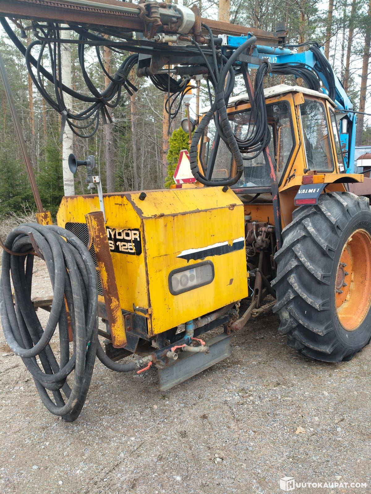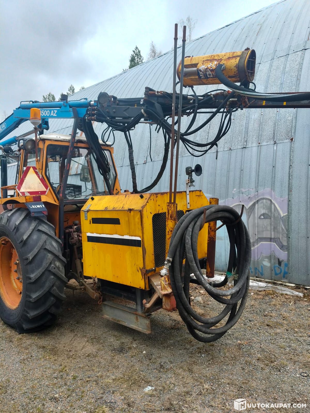 Toimiva pora-/hiekkapuhallustraktori, tällä hetkellä ei liikennekäytössä.