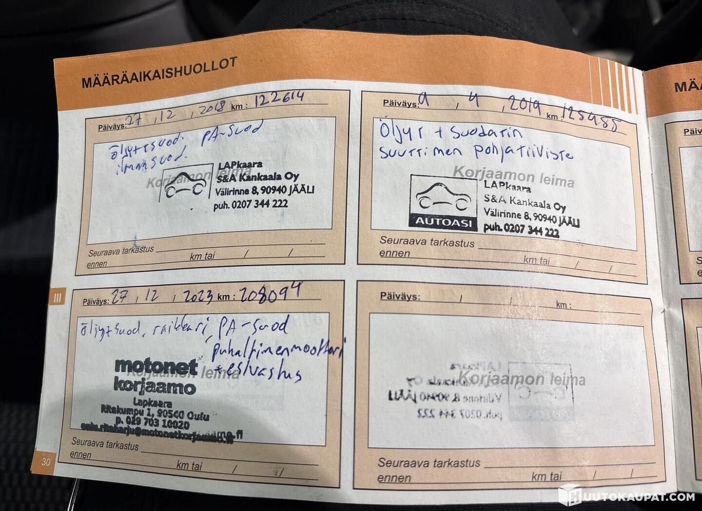 Viimeisin huolto tehty 208 094 km kohdalla 12 / 2023