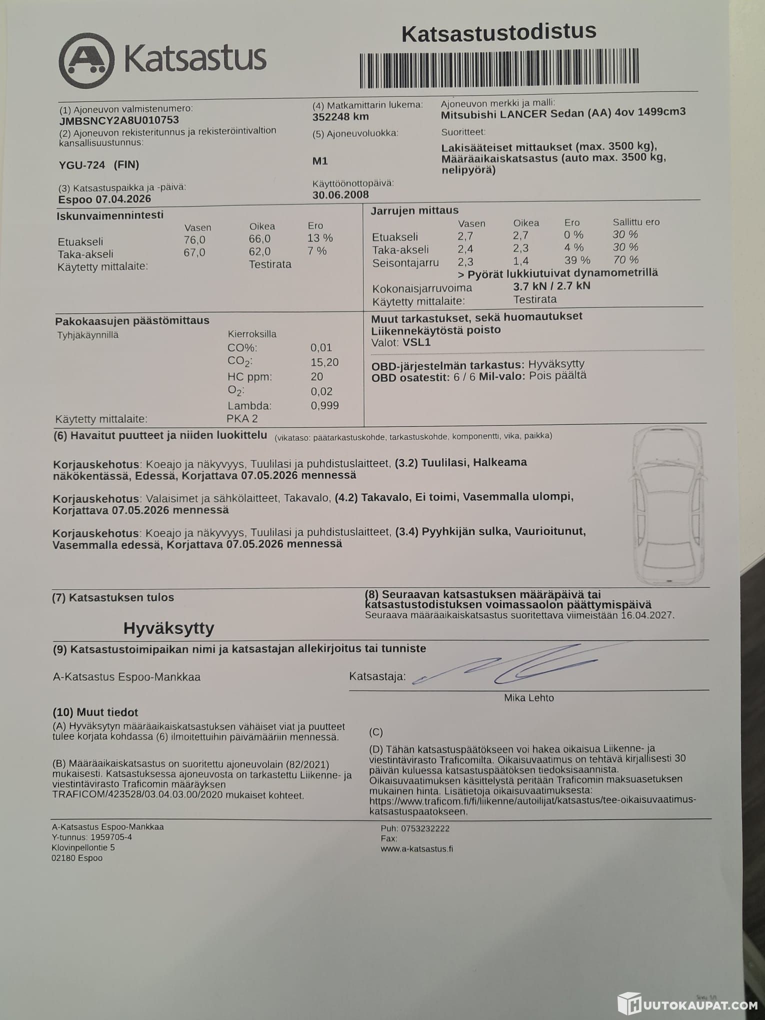 -Katsastettu, korjauskehotus kuvissa