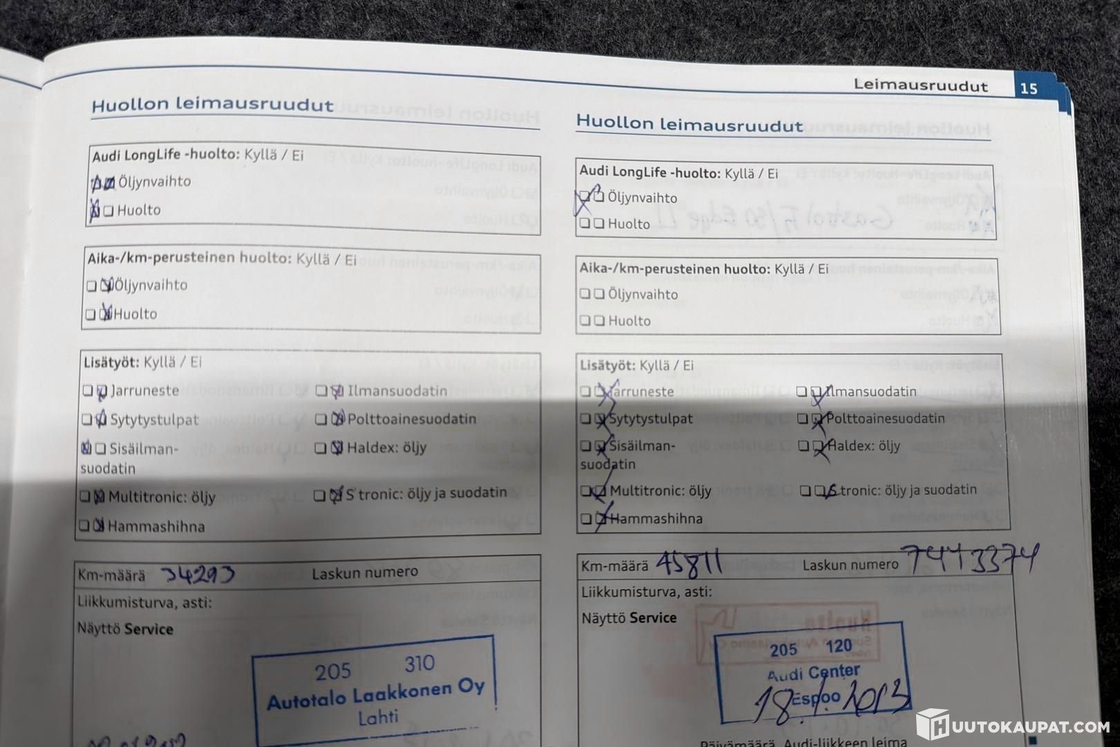 Viimeisin huolto: 238768- Km