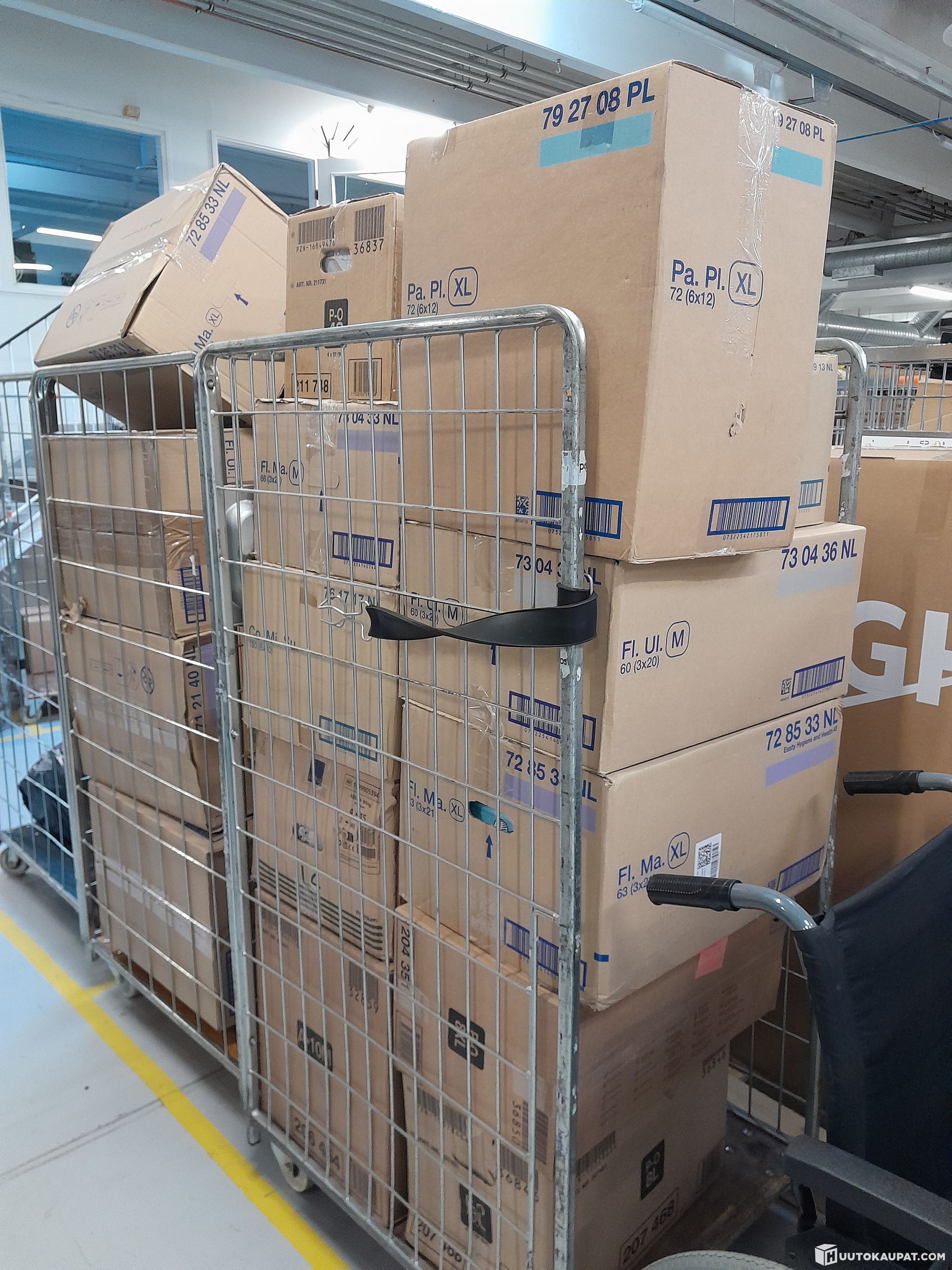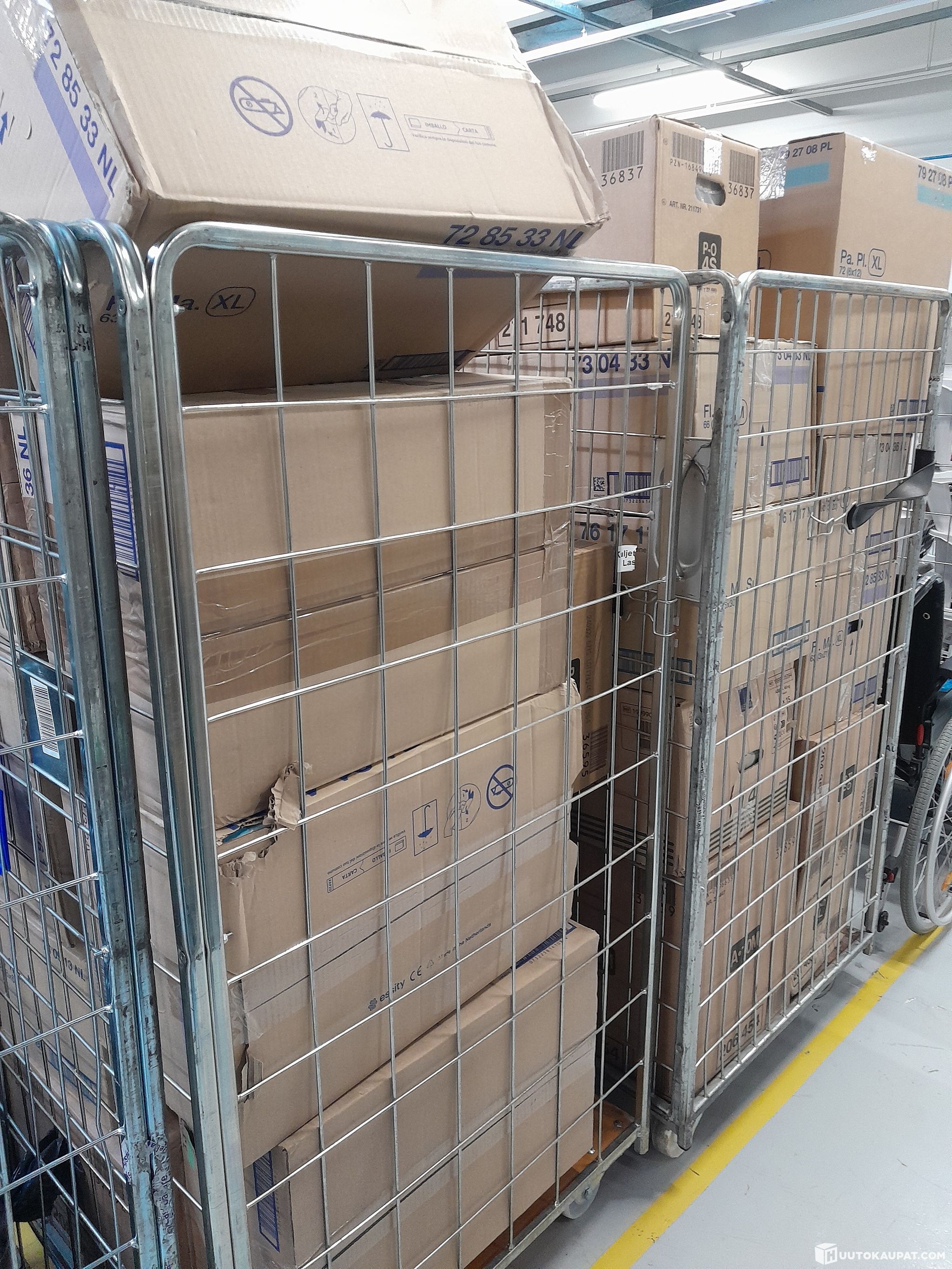 Uusia sekalaisia vaippoja avaamattomissa pakkauksissa. Rullakot ei sisälly kauppaan.
