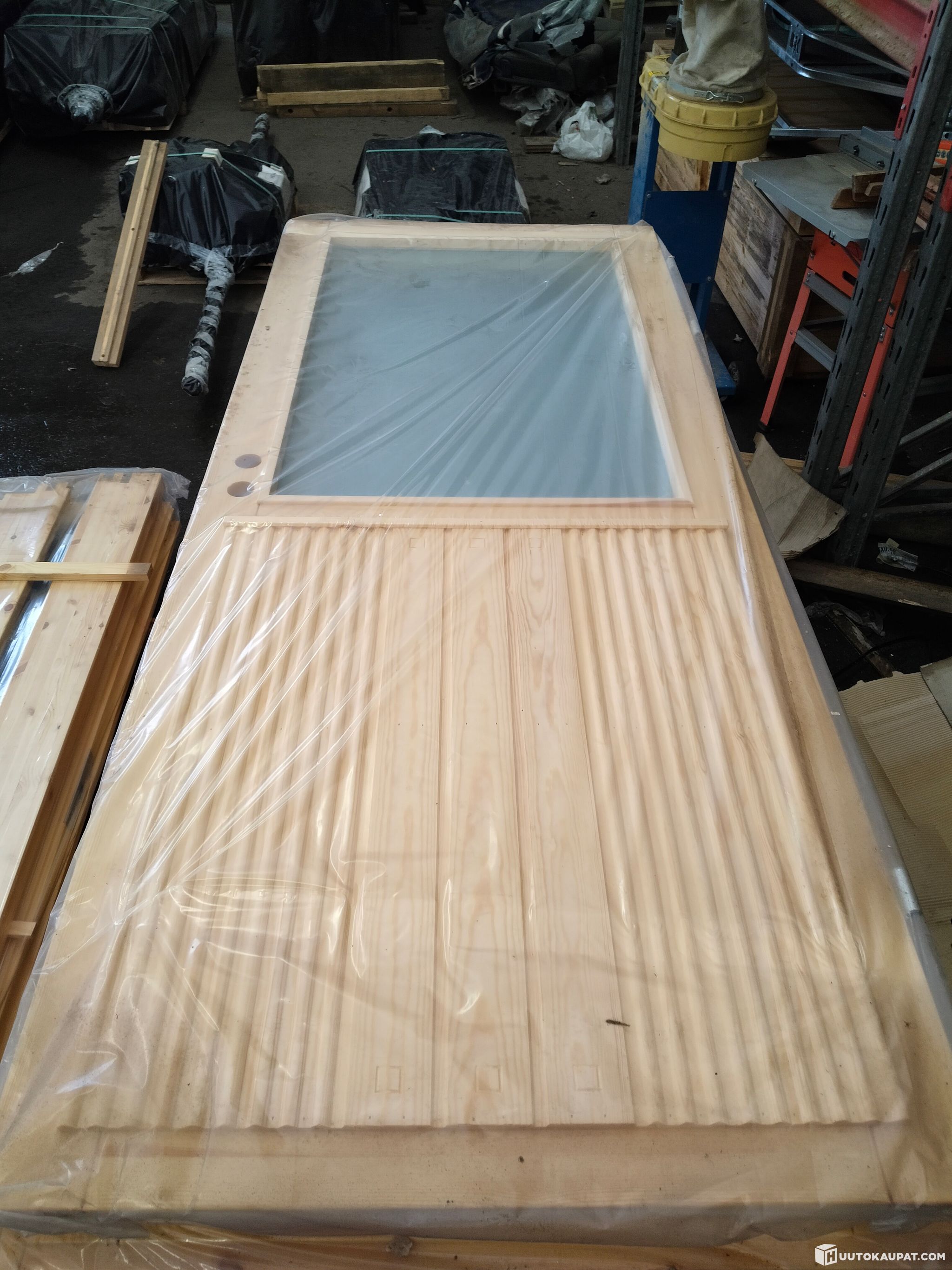 Huudettavana käyttämätön, mäntyinen terassin pariovi. Ovi on ollut varastoituna päällekäin katon alla, kylmässä varastossa yli 10 vuotta ja myydään siinä kunnossa, kuin se on.