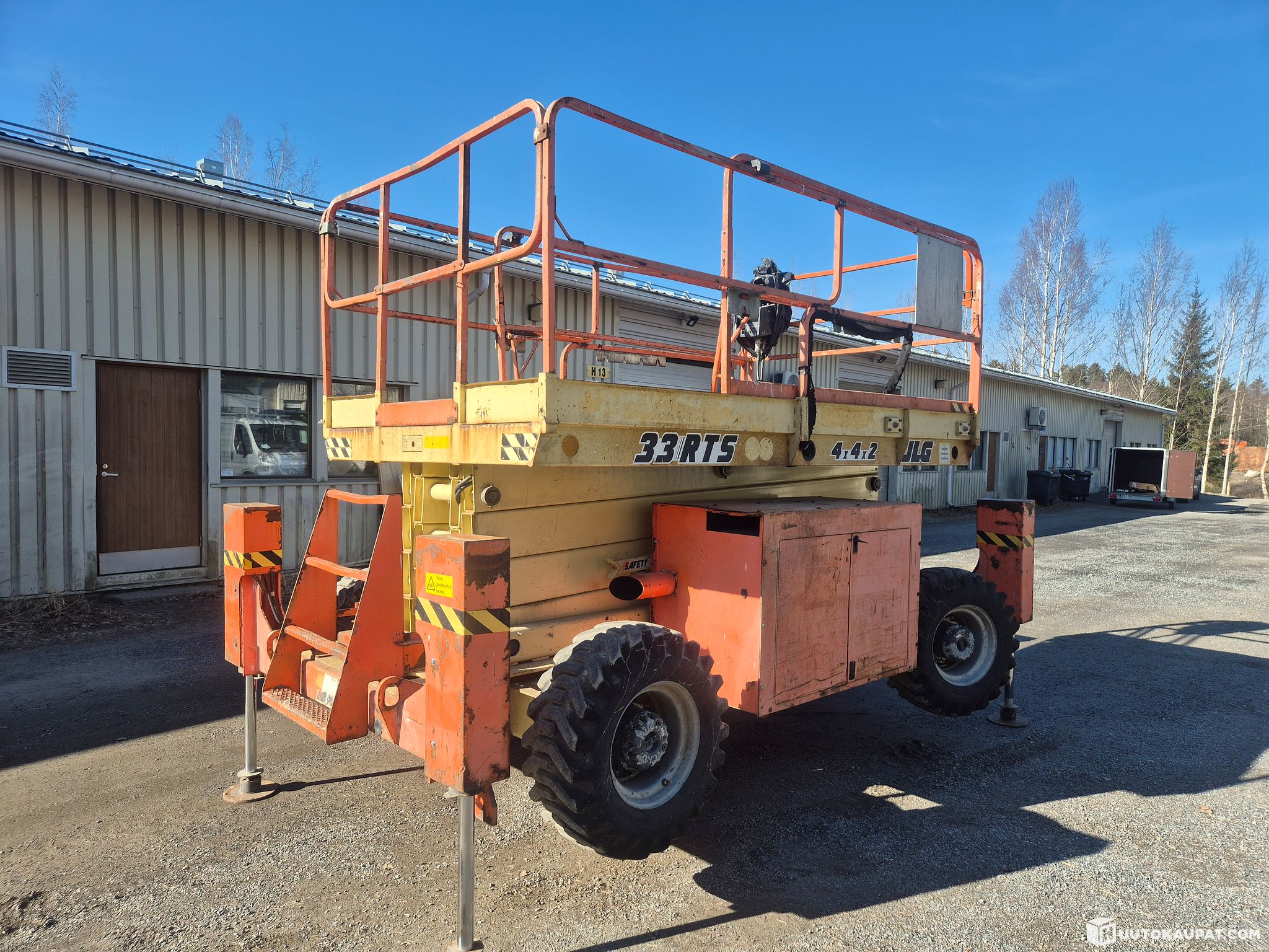 Nelivetoinen dieselkäyttöinen saksilavat. Työskentelykorkeus 12metriä. Kympitys voimassa 2031 asti. Kulkee hyvin huonommassakin maastossa.